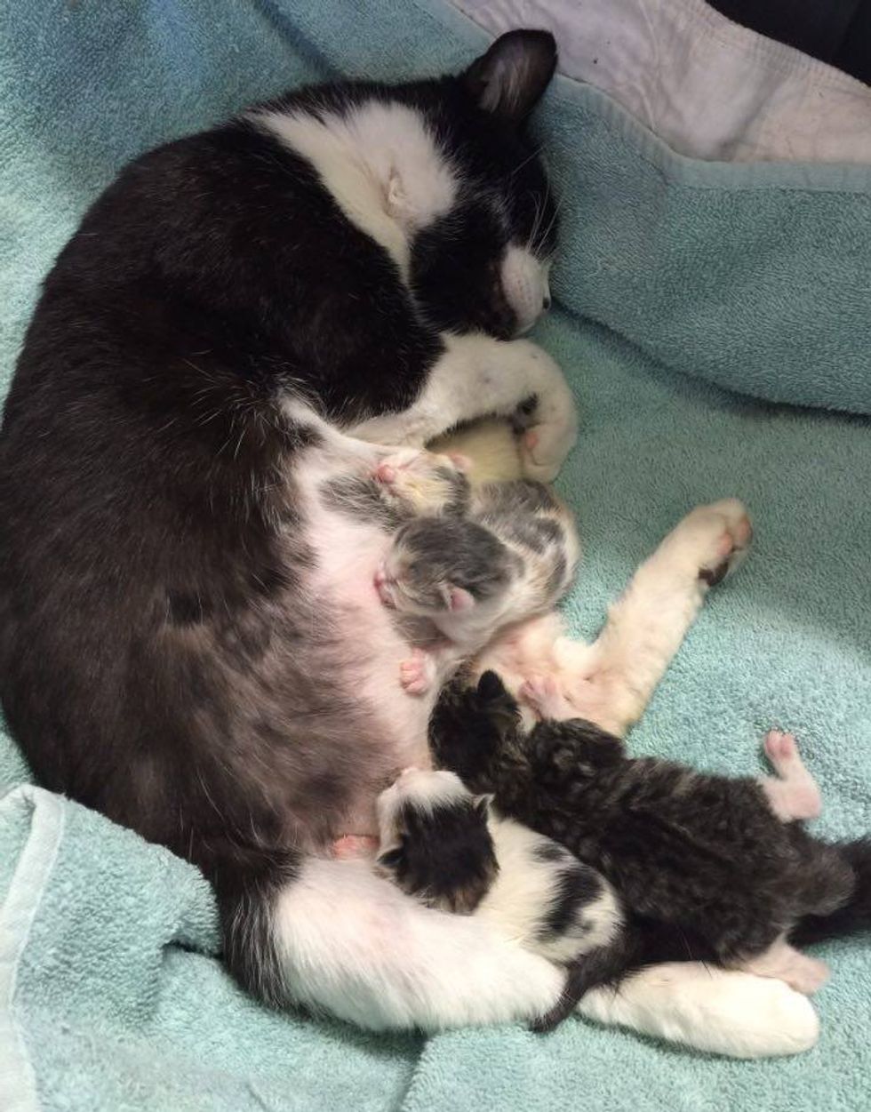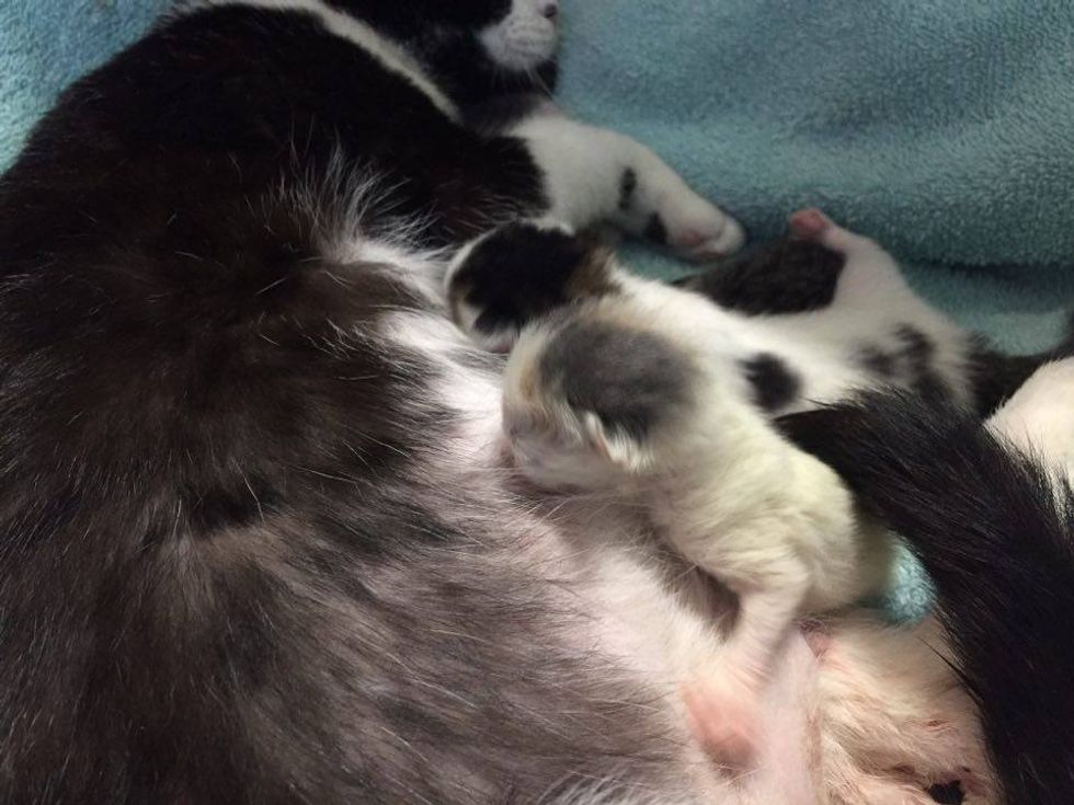 Harper is a wonderful mama and her kittens are happy and squirming.