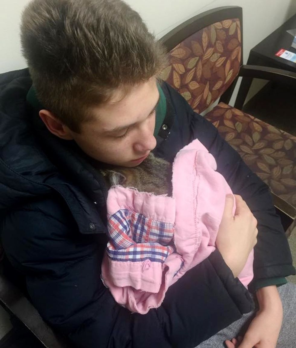 Lucky was taken to BluePearl Animal Hospital, and the staff started working on him and gave him meds to relieve the pain. "Gavin was not letting go of his new baby. The bond was instant and he was a hot emotional mess over this cat."