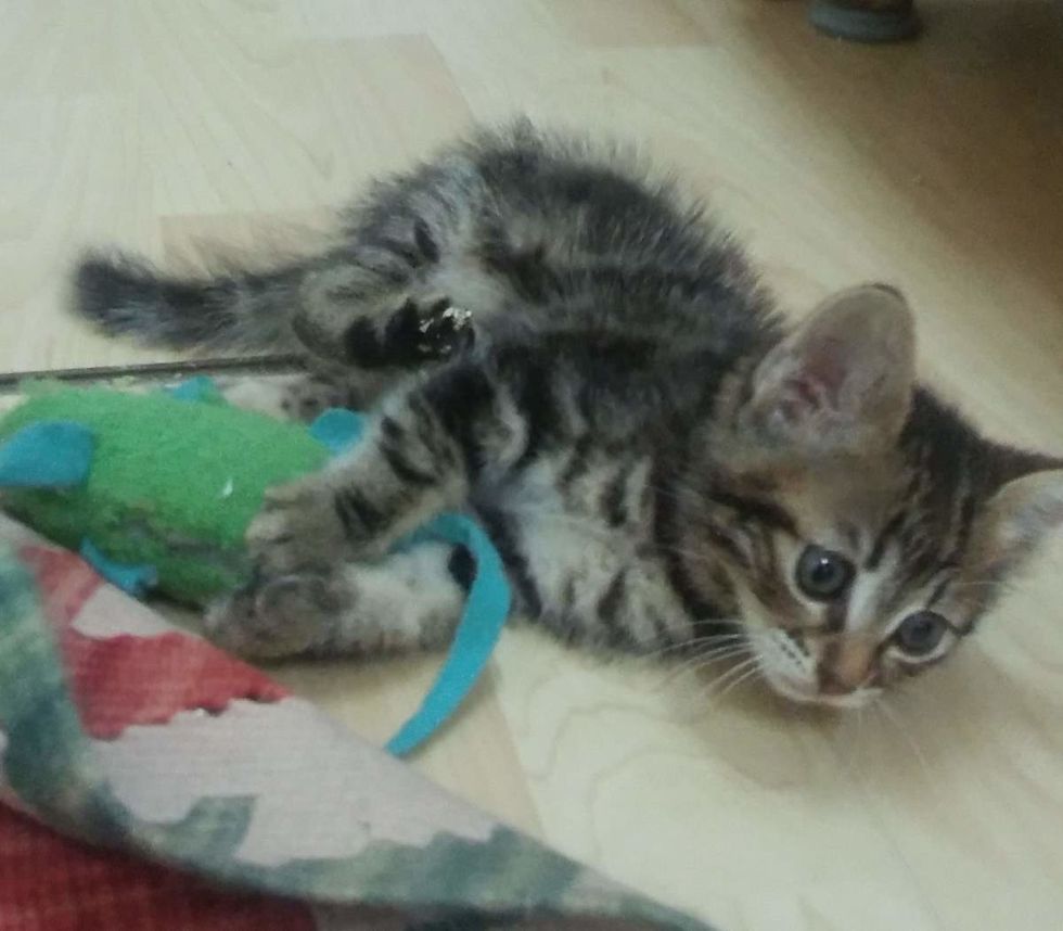 The sweet kitten went from being abandoned to now having a forever home where she's loved and spoiled. Nevres couldn't be happier.