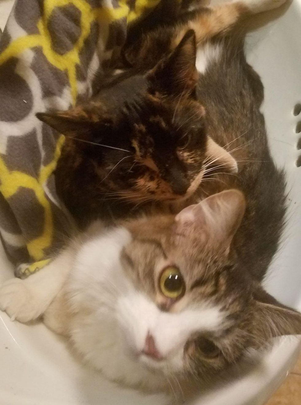 "They slept in our sink, like all cats like to, and just snuggled and held each other."