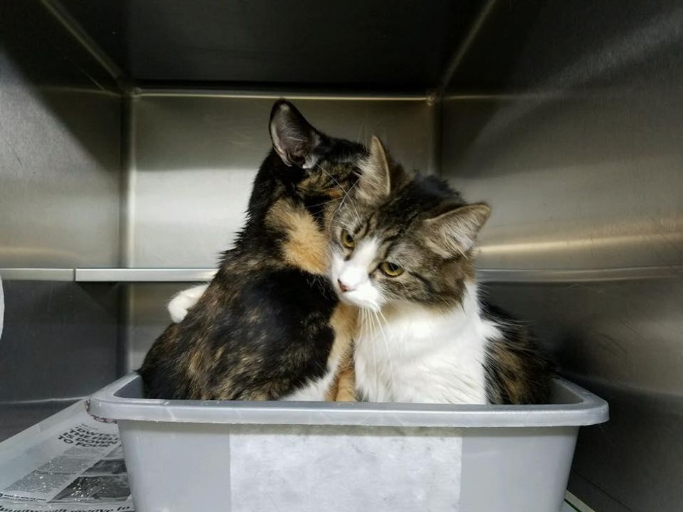 Two beautiful bonded cats never stopped cuddling when they were waiting for their forever home at the shelter.