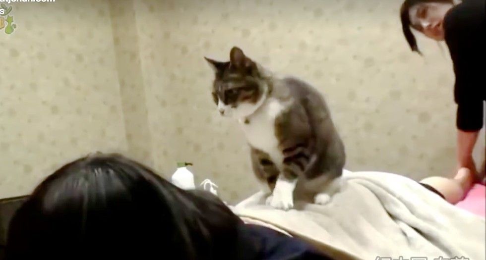 We have heard of office cats, vet cats and therapy cats, but this tabby cat finds her profession at a beauty parlor as their very own esthetician cat. Every time a customer comes for a massage or beauty treatment, she will hop on their back or tummy and start kneading away while her human counterpart works on their calves or gives a facial.
