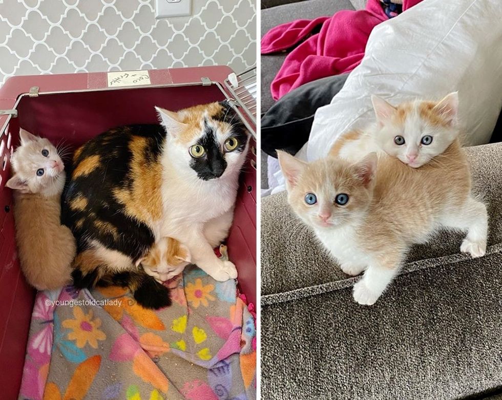 Ashley brought them to her home to foster. The cat mom was a bit overwhelmed being in a new environment. She spent many days hiding in a corner while her kittens slowly came out of their shells to play and explore.