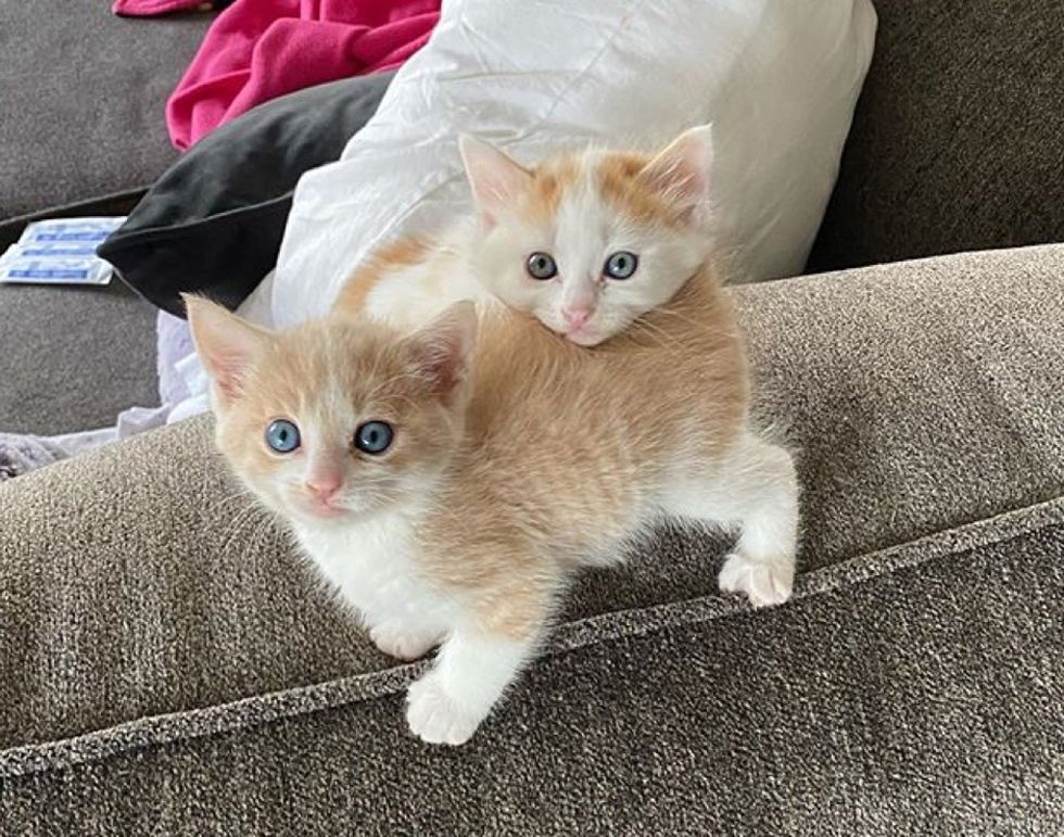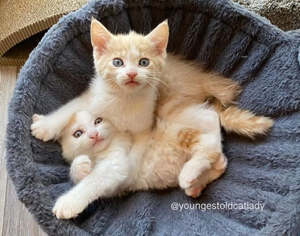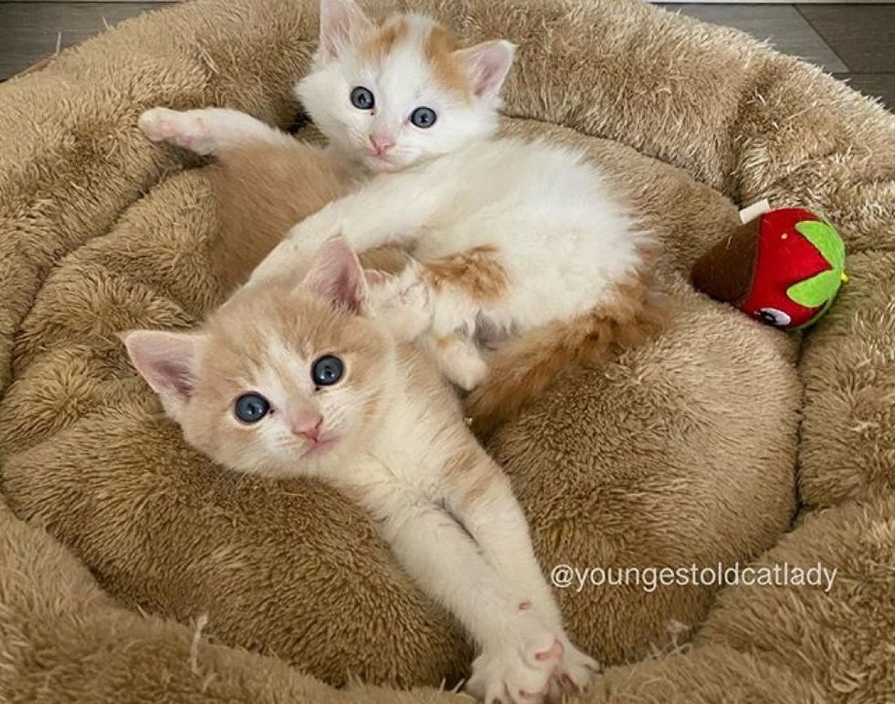 "Sweet little Cheeto and Frito loved having more kittens to play with but always came back together."