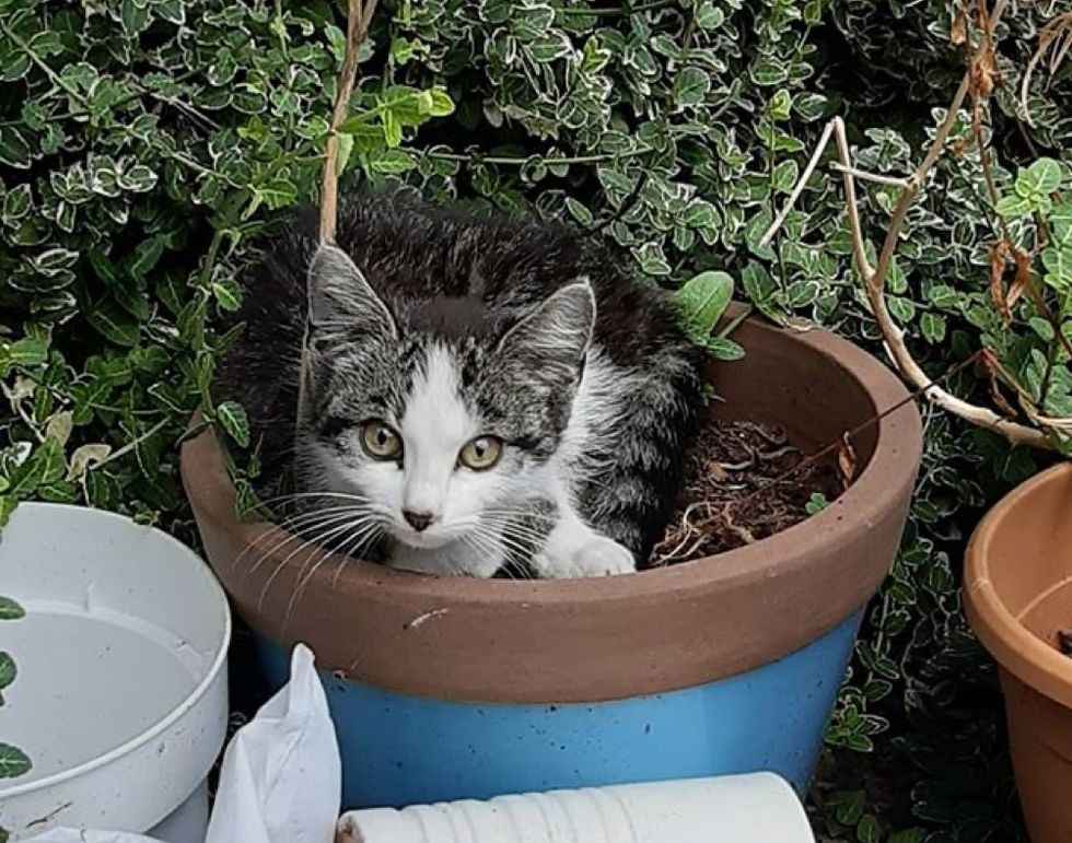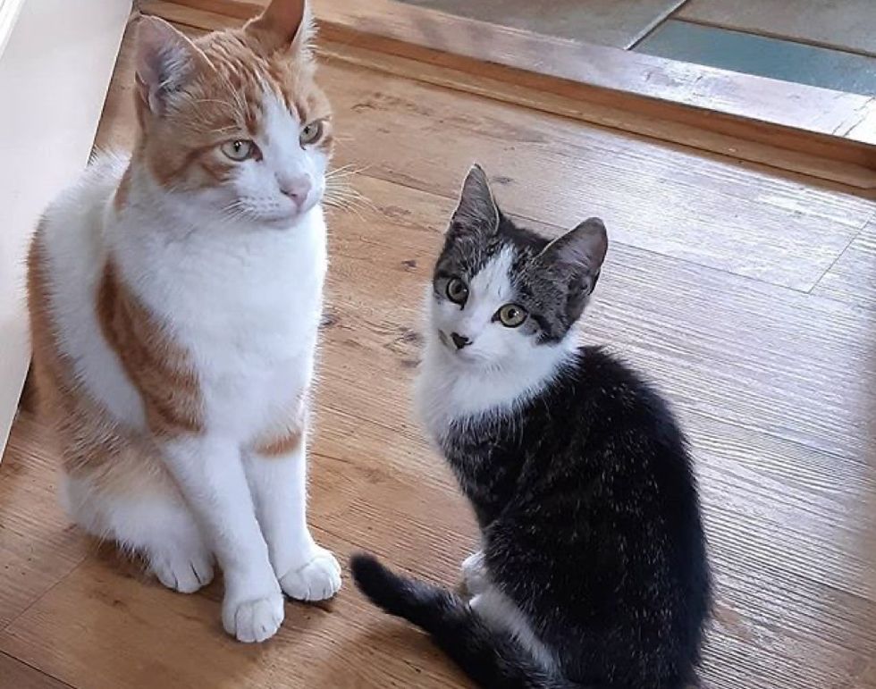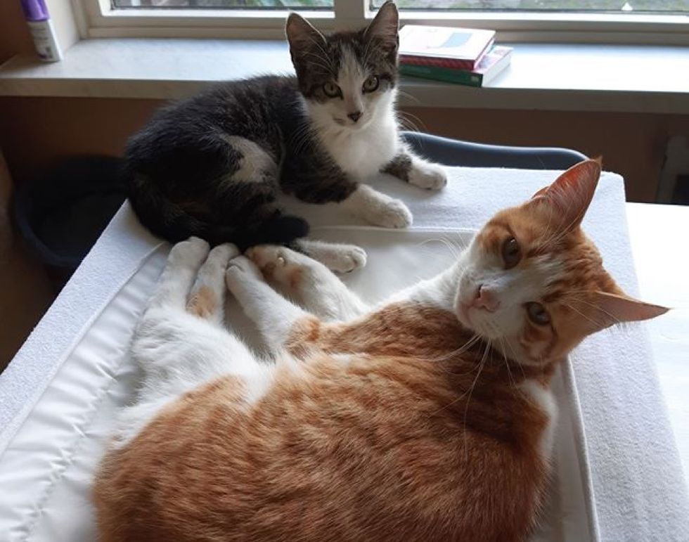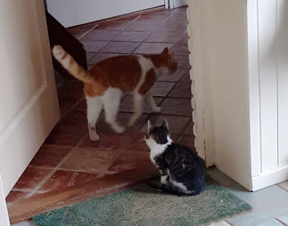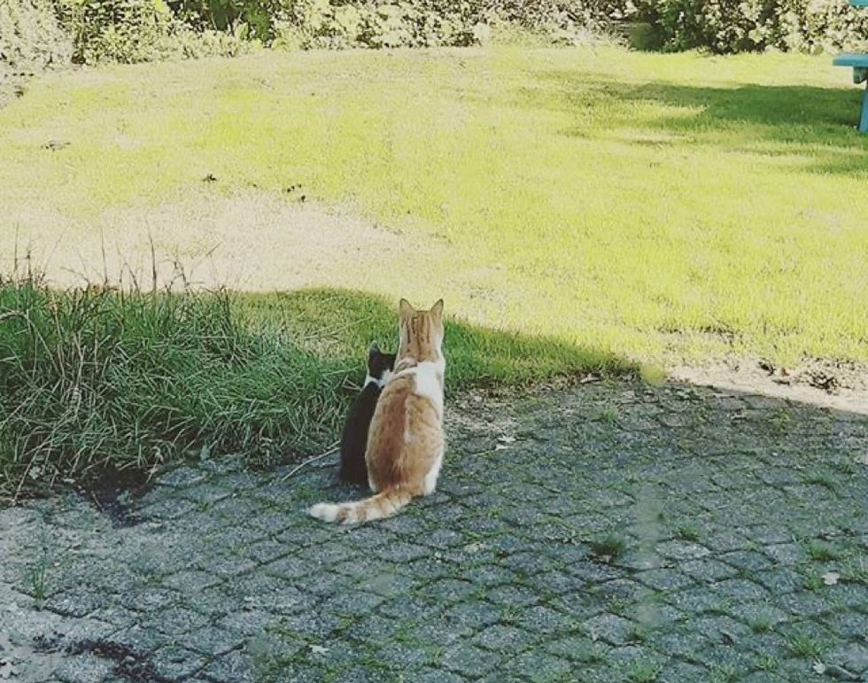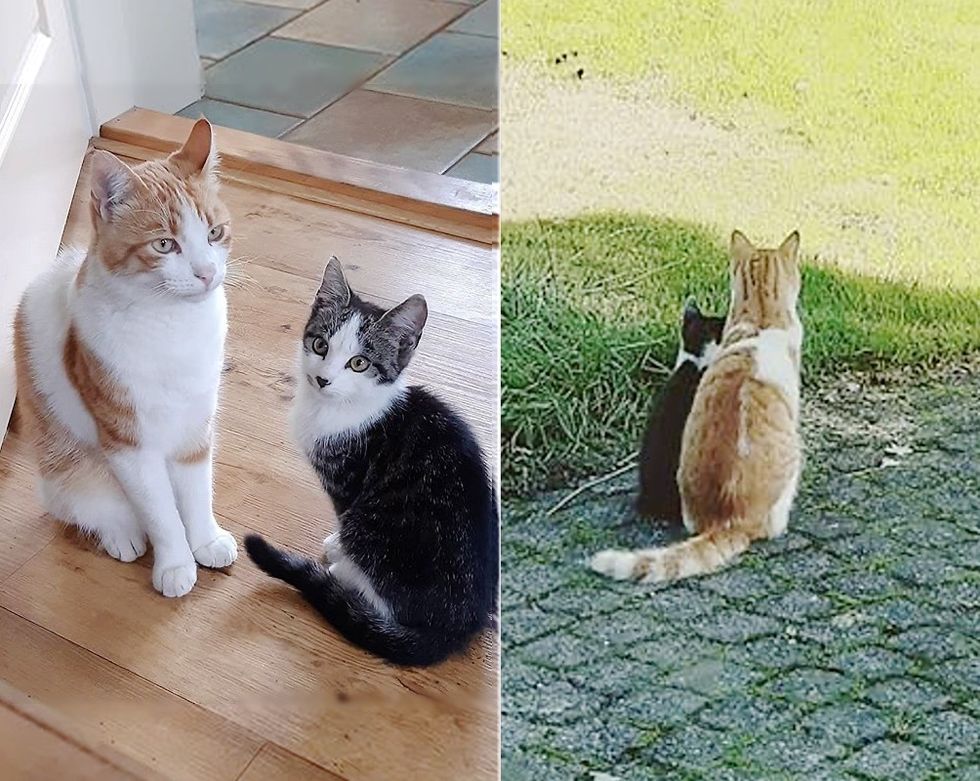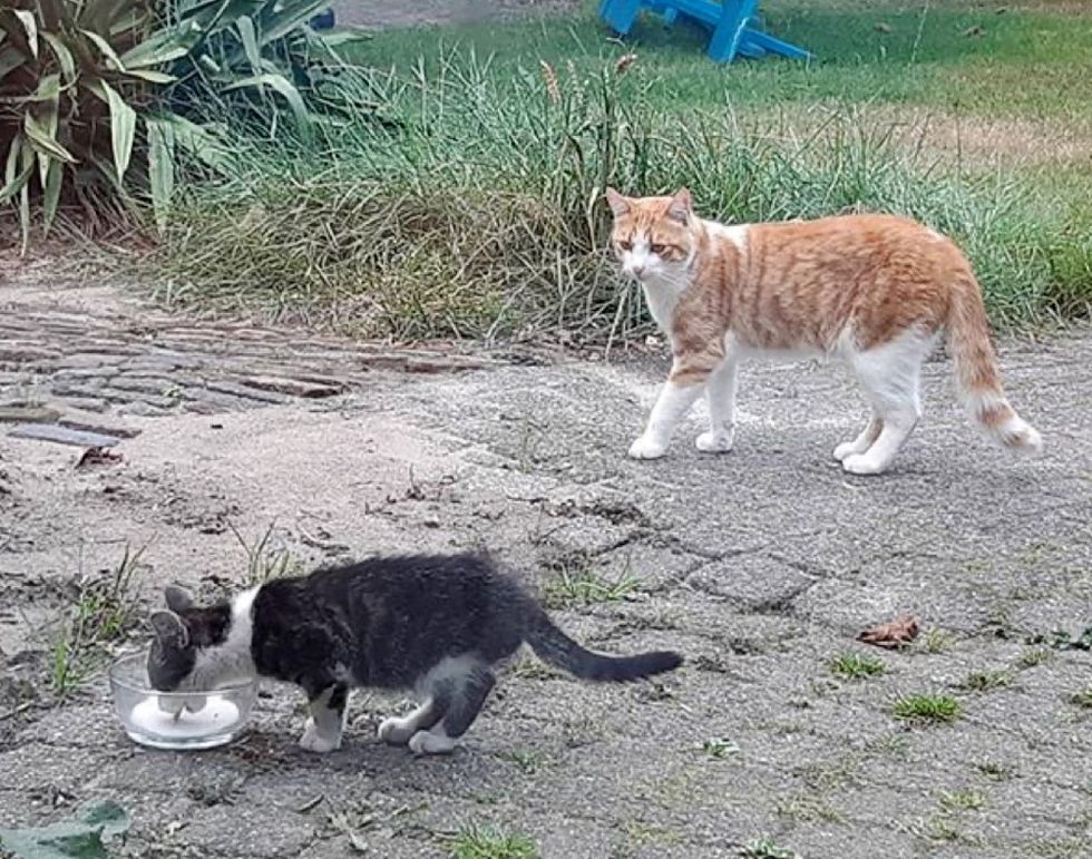 When he returned the next time, Klarieke was surprised to find her cat, Stavros, hanging out with the little kitten like two good pals. The orange and white cat took the tabby under his wing and watched him as he played in their garden.