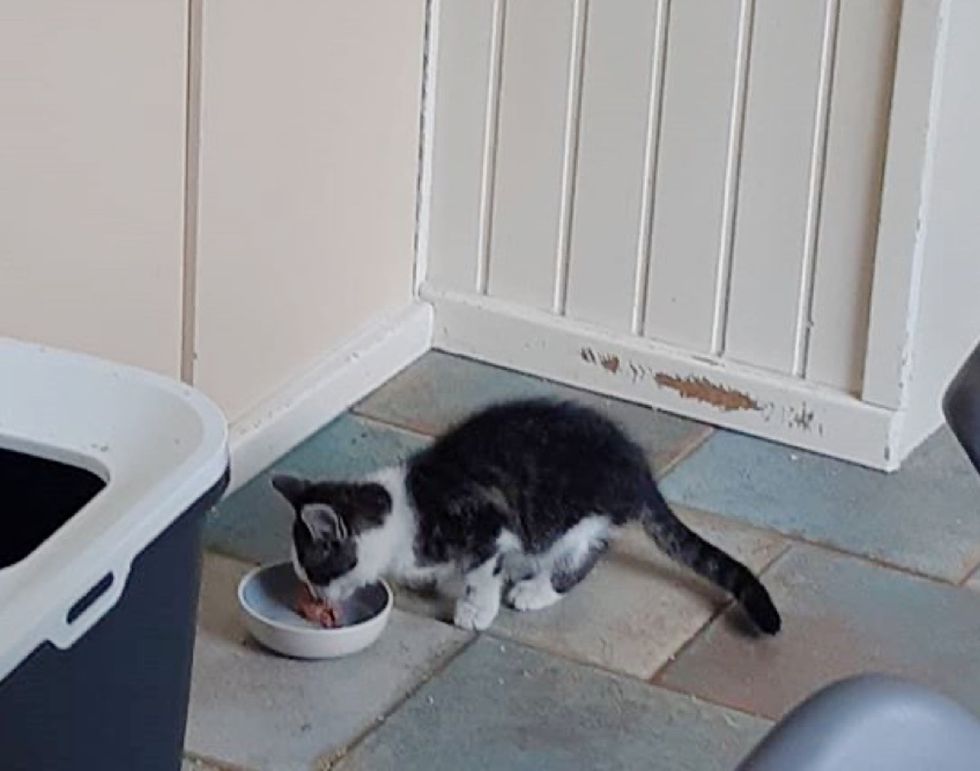 From that day on, Klarieke prepared an extra plate of food for the plus one, and hoped to win him over. The kitten came for his meals and began to warm up to his food provider.