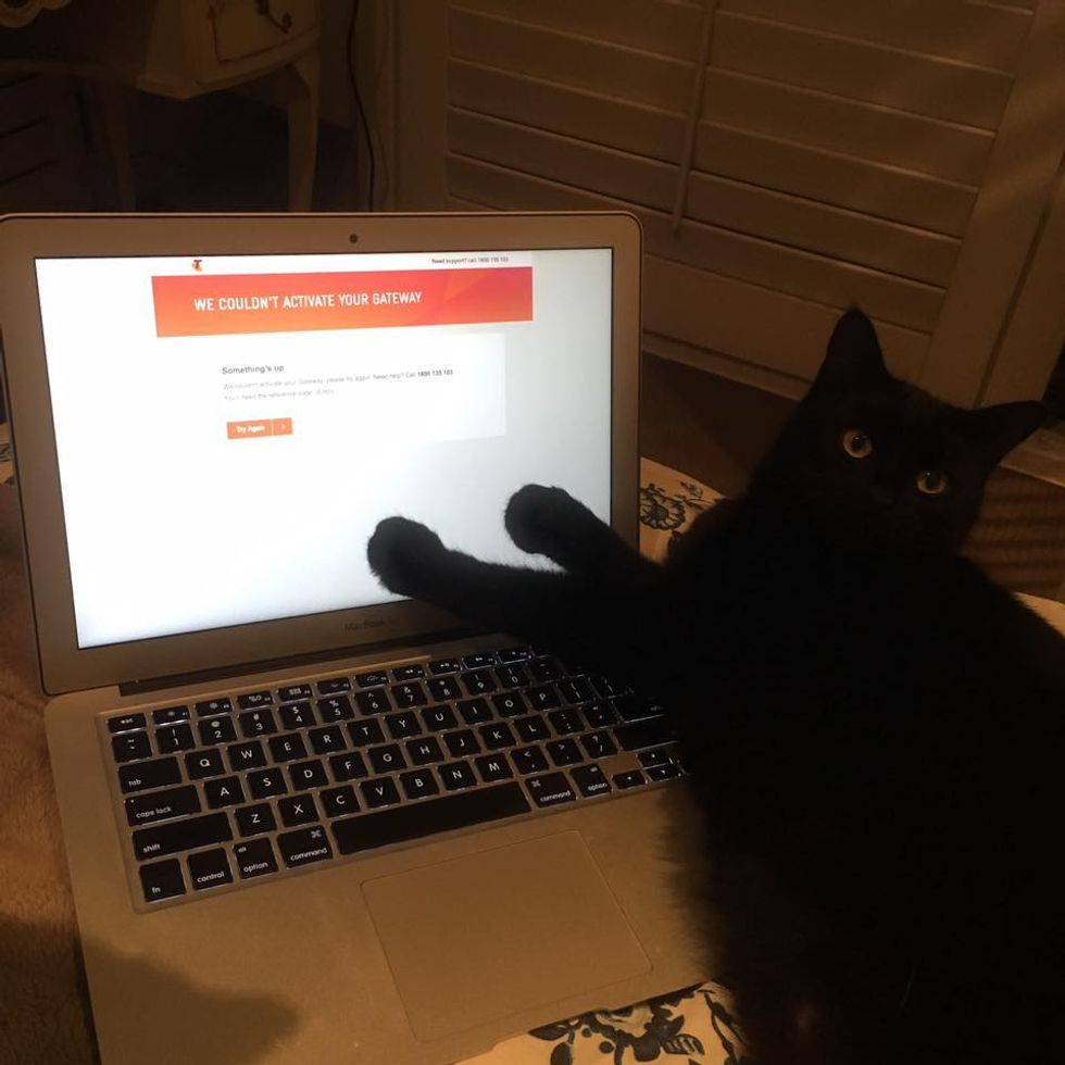 After days of having no internet, a customer from Sydney, Australia reached out to her broadband service (Telstra) via their Facebook page with some help from her beloved cat.