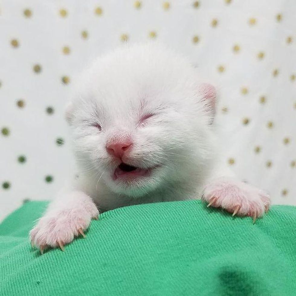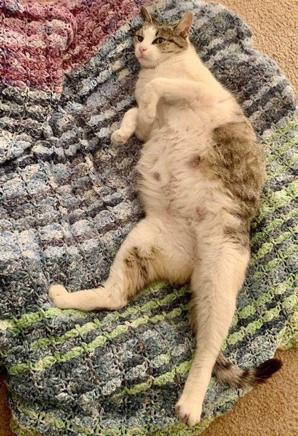 The lovable cat felt right at home as she lied down on the floor and laid her head on a soft blanket. She stretched her paws and toes while she rumbled with her adorable purrs. It was as if she knew that she was in good hands.