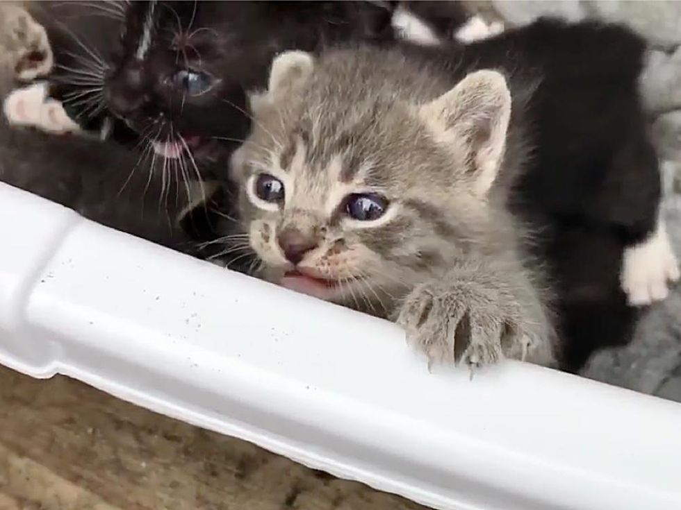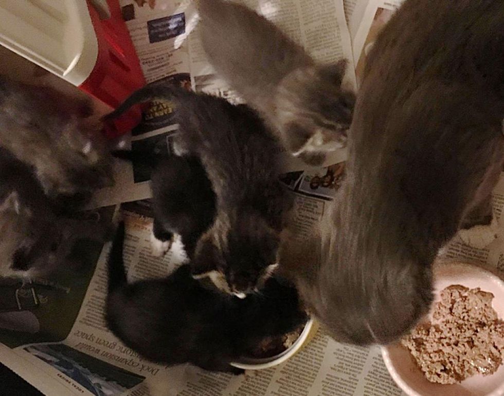 "It was going to get cold so I went to check the situation. The kittens were very hungry when I picked them up. The poor mom must have been relieved to have help feeding all those babies."