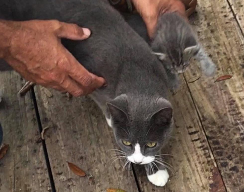 A cat had been seen wandering around a horse farm in Wellington, Florida for some time. A worker named Maximo started caring for the friendly stray when she came to his camper. A while later, he noticed that the cat was pregnant.