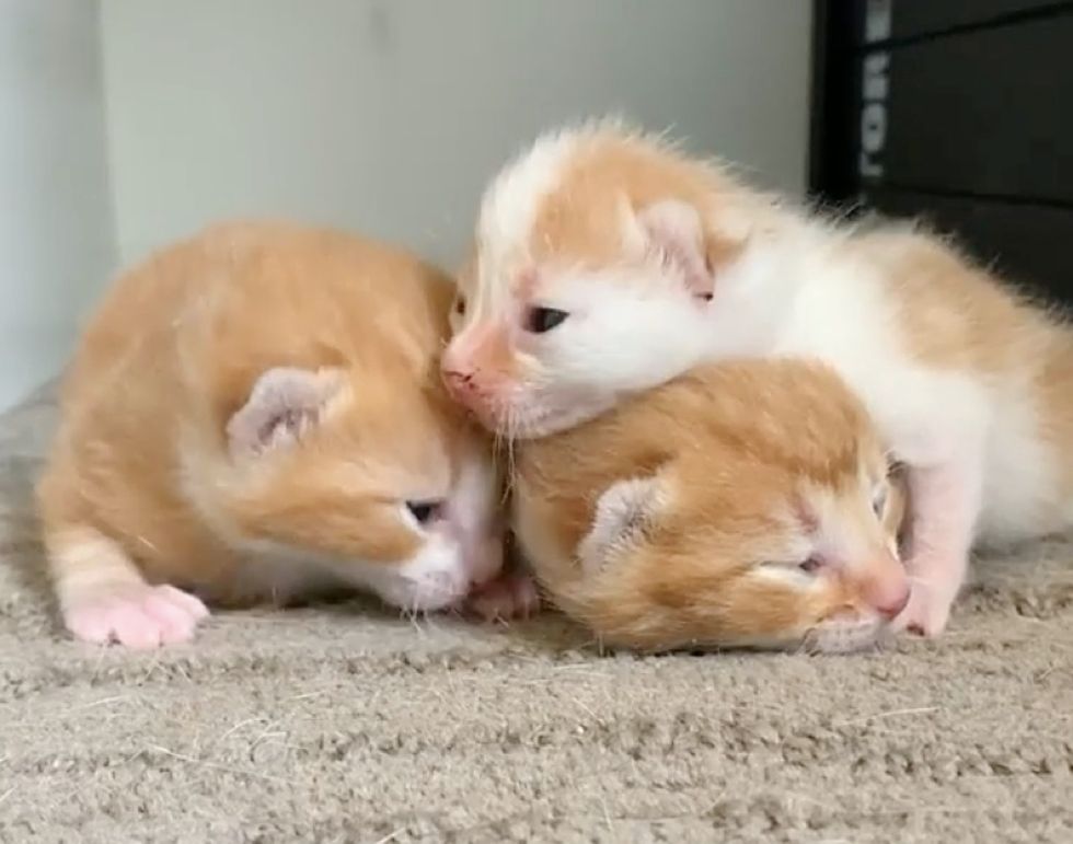 After receiving supplemental nourishment, Banana (the tiniest of the three) almost caught up in size with his siblings and could hold his own when they wrestled.