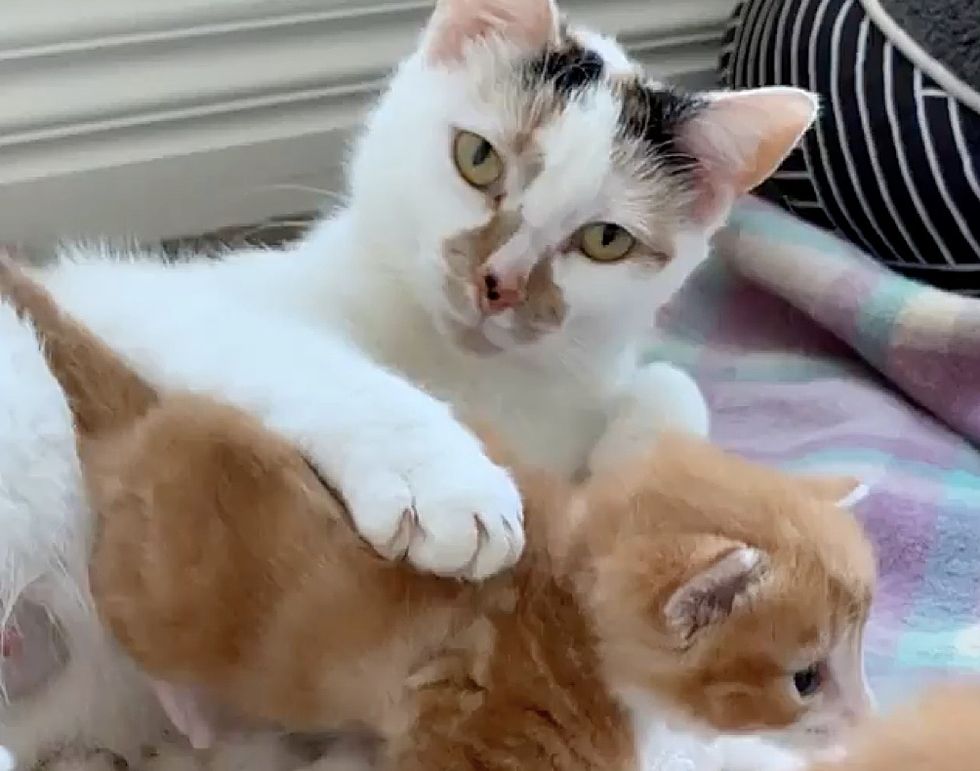 "Thankfully, by the time the fourth baby arrived, she read the 'how to be a cat mum' memo and got on with the job, and is now a very contented girl looking after her babies," Amber added.