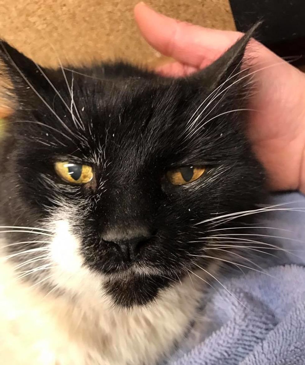 Noticing her unfortunate living quarters and neglect for proper feline care, the compassionate woman reached out to a local rescue group for help. She contacted Here Kitty Kitty Rescue in Elkhart, Indiana in hopes to find the deserving senior a loving home.