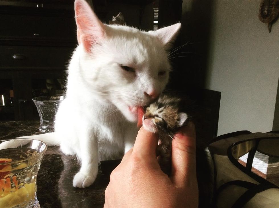 He becomes their dedicated surrogate dad, and his fatherly instinct kicks in the moment he sees a kitten.