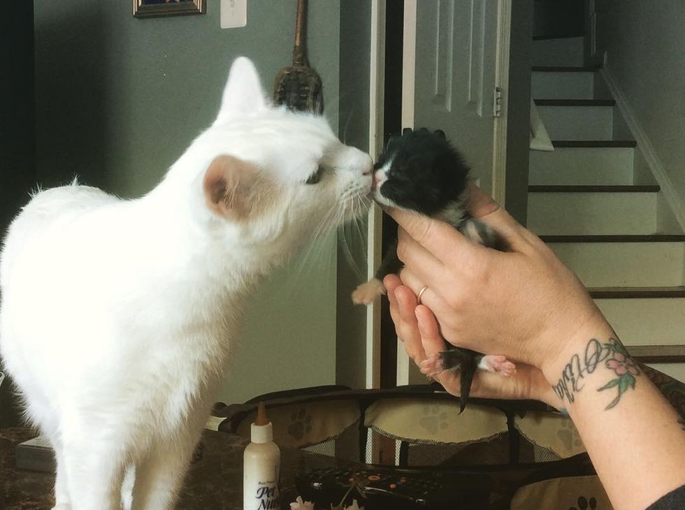 This sweet kitty gets the most joy when his human mom brings home rescued kittens, so he can help look after them and show them the same love that he received when he was rescued.