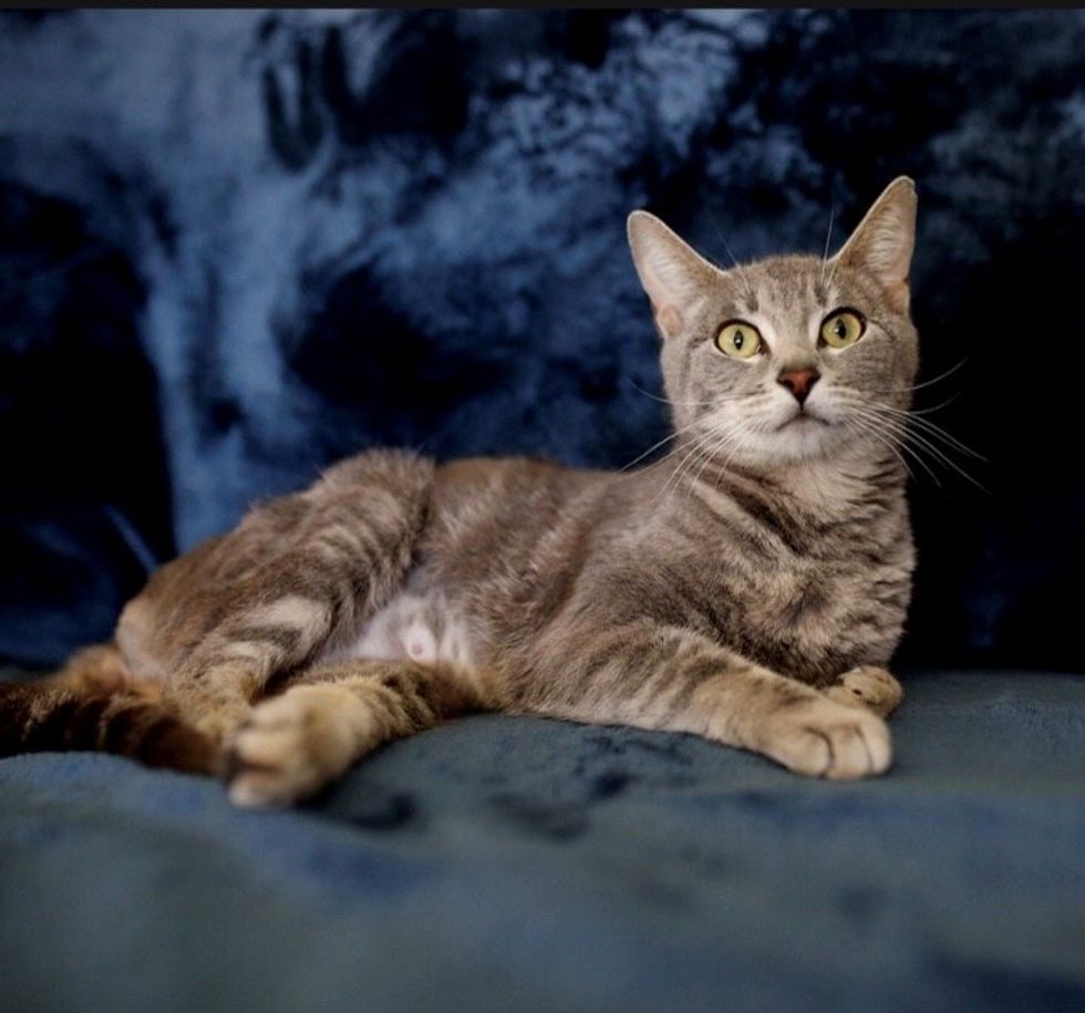 The gray tabby had been injured by a bullet which was lodged in her lower spine, but the brave girl refused to give up.