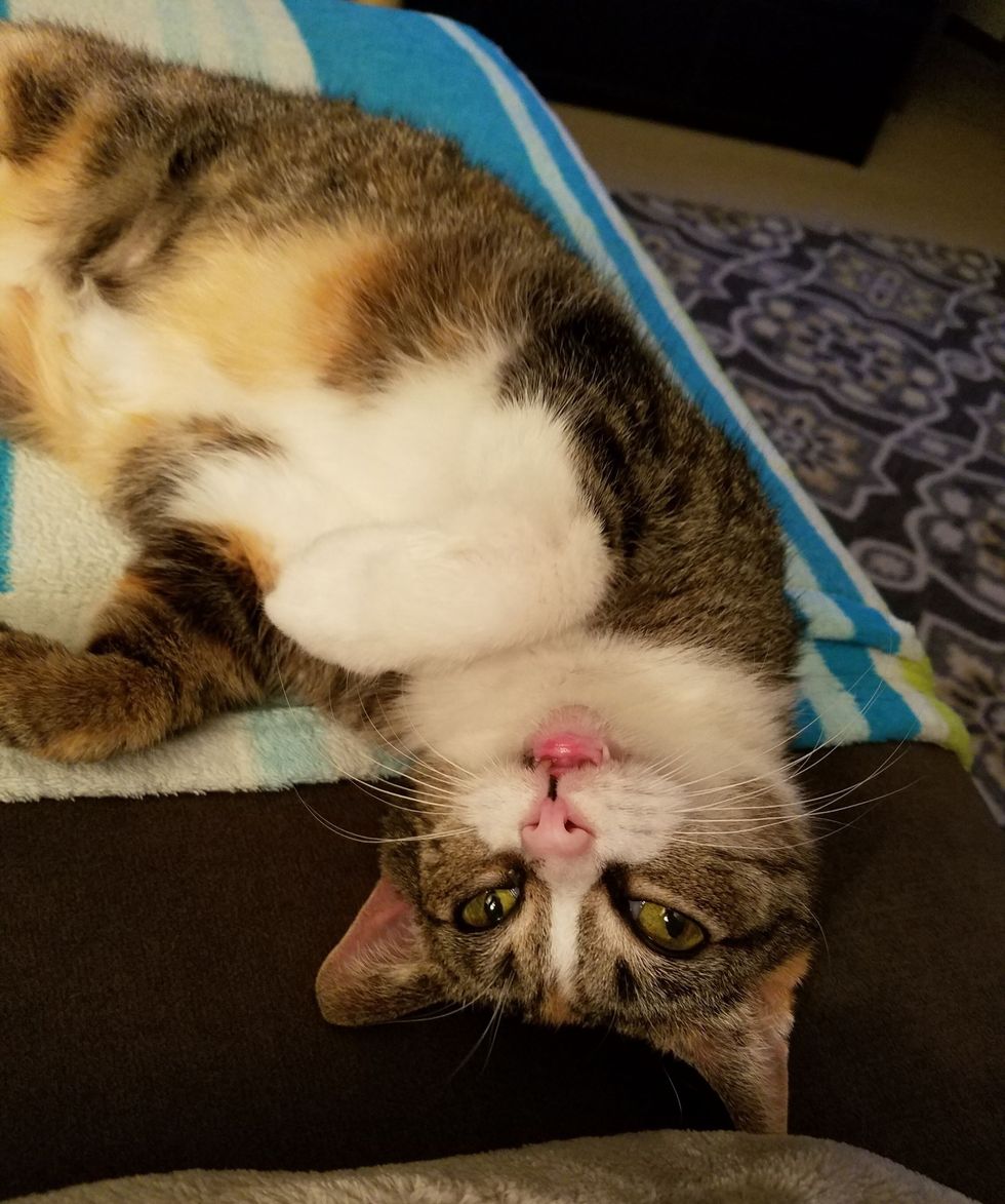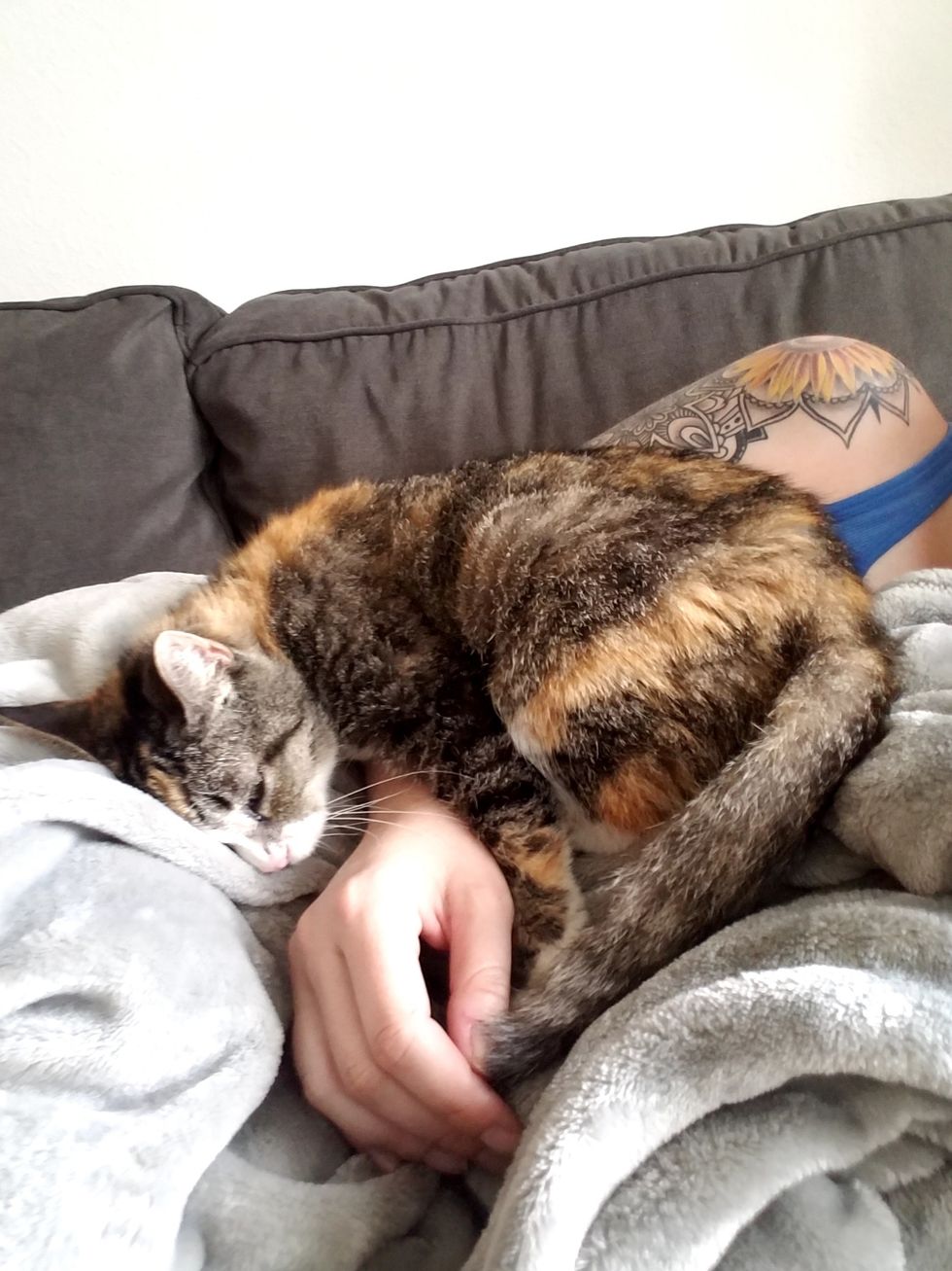 At that moment, Bridgid knew she had found the right cat. Cali who had lived a stray life, latched onto her human and purred up a storm.