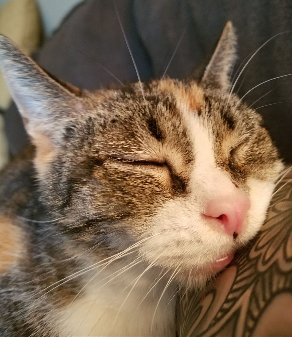 The sweet kitty realized that she was finally home. "Ever since then, she has slept through the night (right next to me and sometimes sharing my pillow) and has been the biggest cuddlebug," Bridgid told Love Meow.
