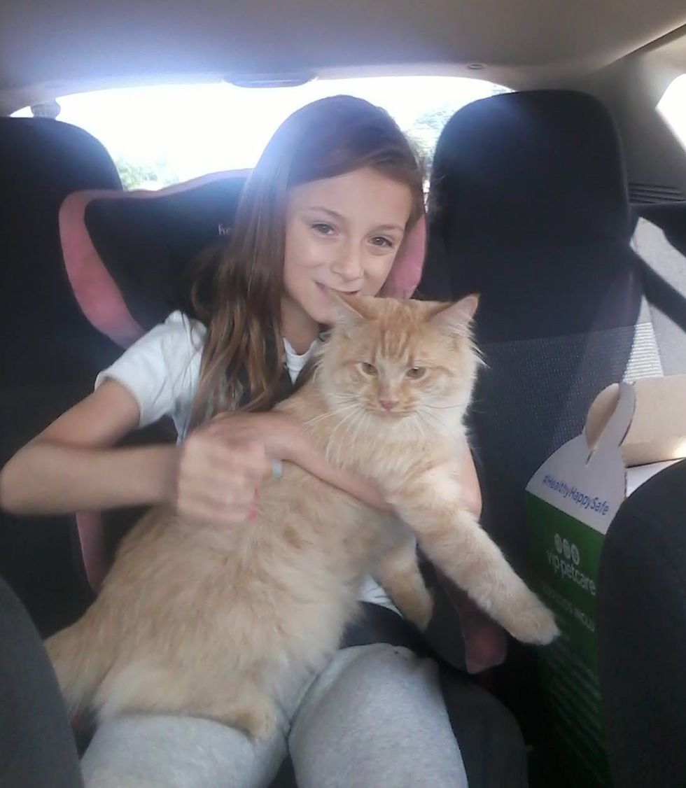 "He pushed himself right out of the cat carrier in the back seat and climbed on my daughter's lap. We are so happy."