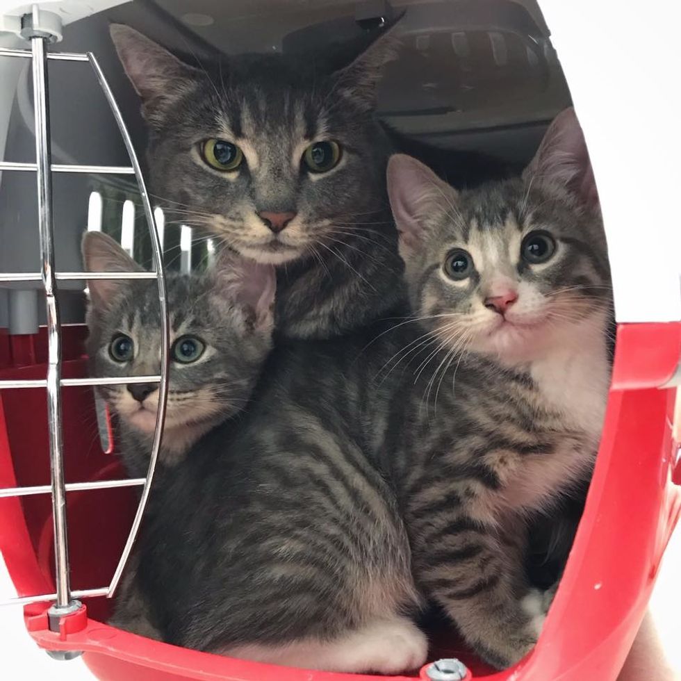 As it turned out, she had given birth to four little kittens in the shelter outside. They immediately took them in. "Mama was exhausted trying to keep her babies safe."