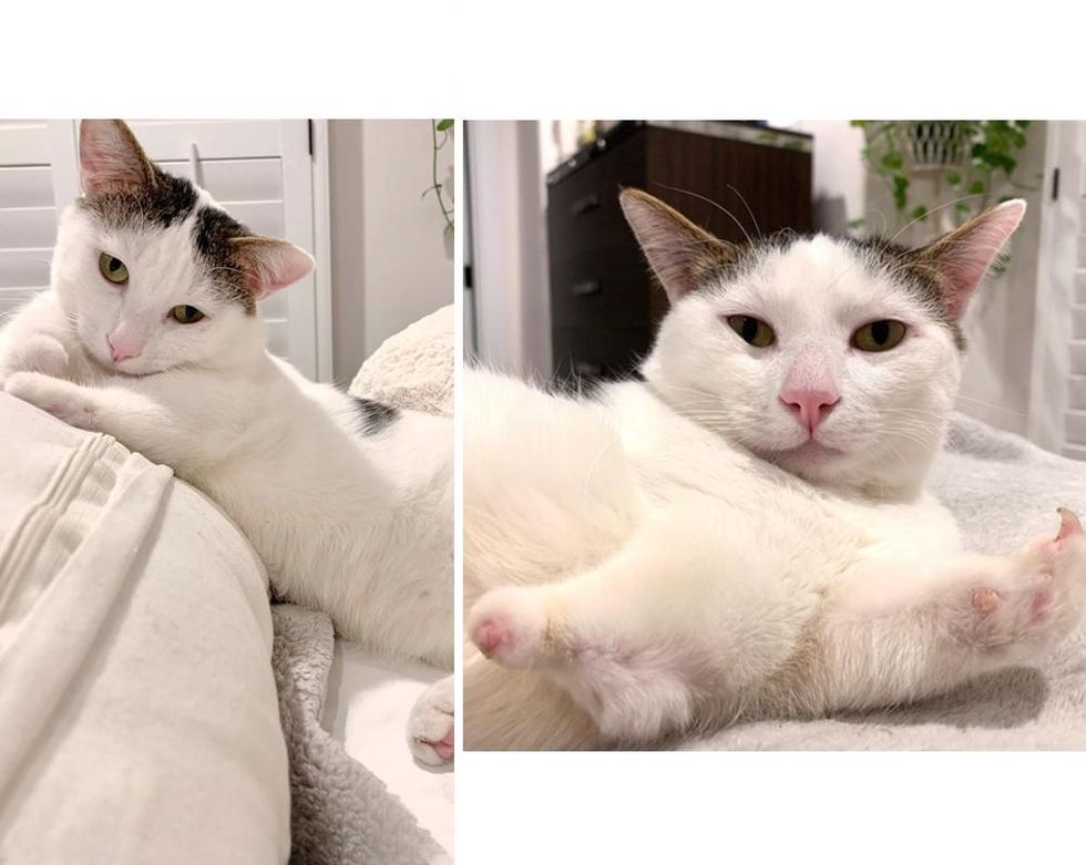 Grace was determined to get the deserving feline the best life and help him adjust to being an indoor cat. "At first, he didn't have much of a personality. He wouldn't really move. He just wanted to be pet all day," Grace said.