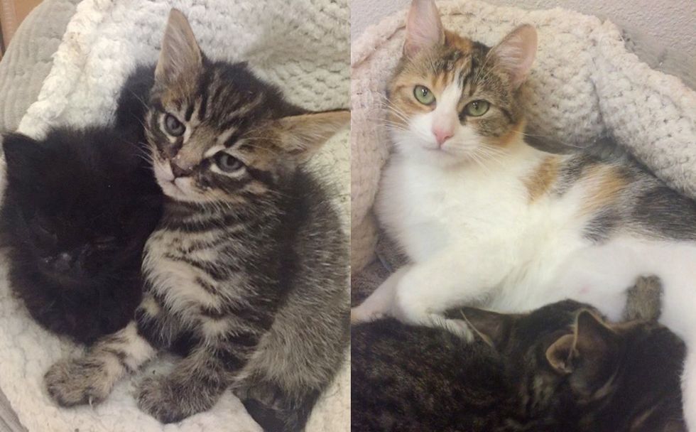 "The kittens were around three weeks old. Their eyes were open and they were starting to walk but very wobbly," Angela shared with Love Meow.