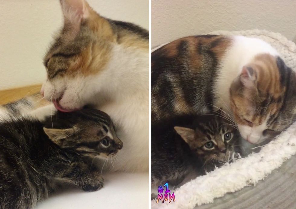 "Primrose completely fell in love with the kittens and took care of them as her own."