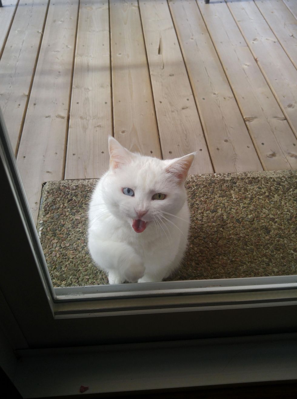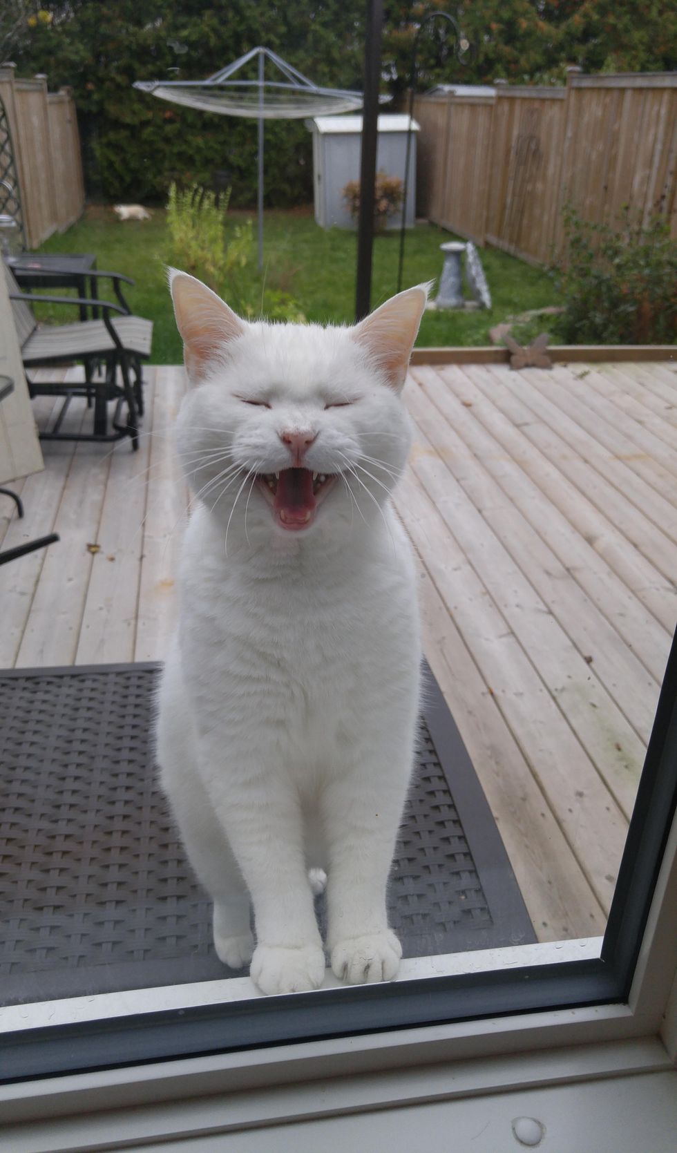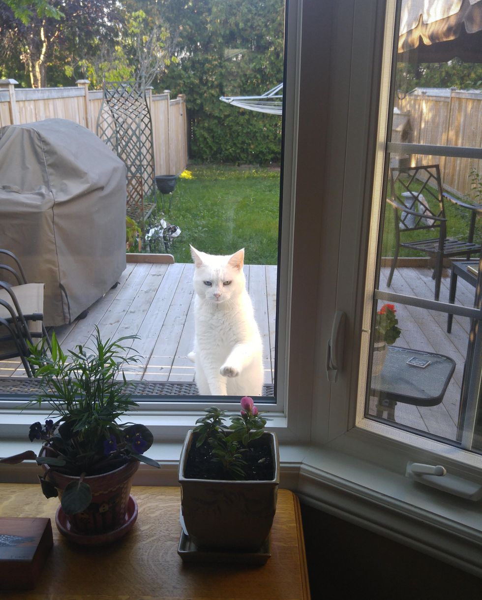 This time she knocks on the patio door, asking for their attention right meow!