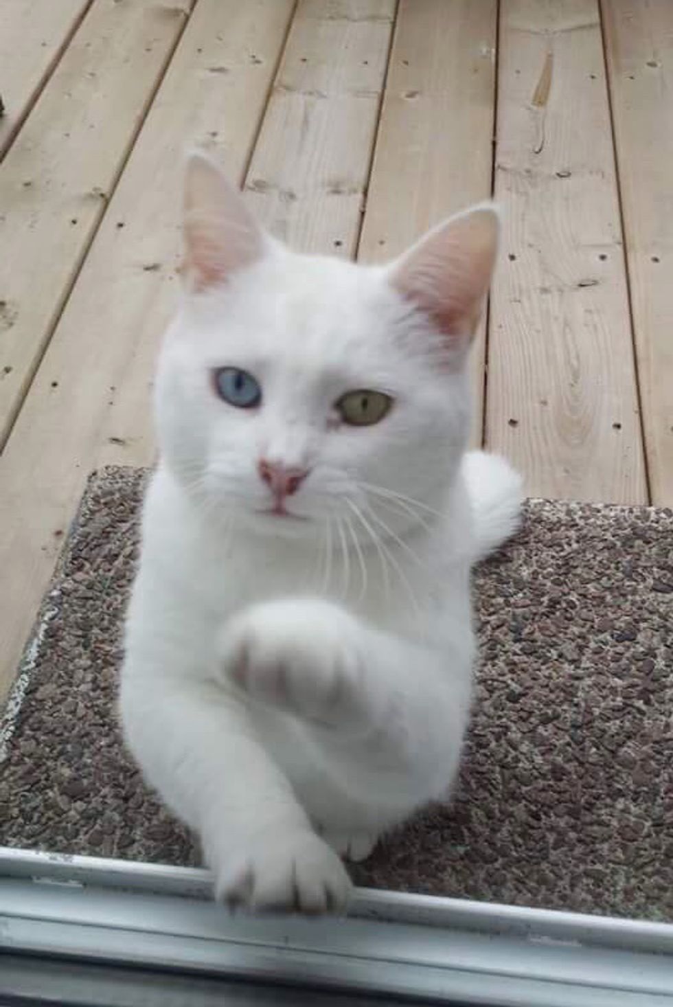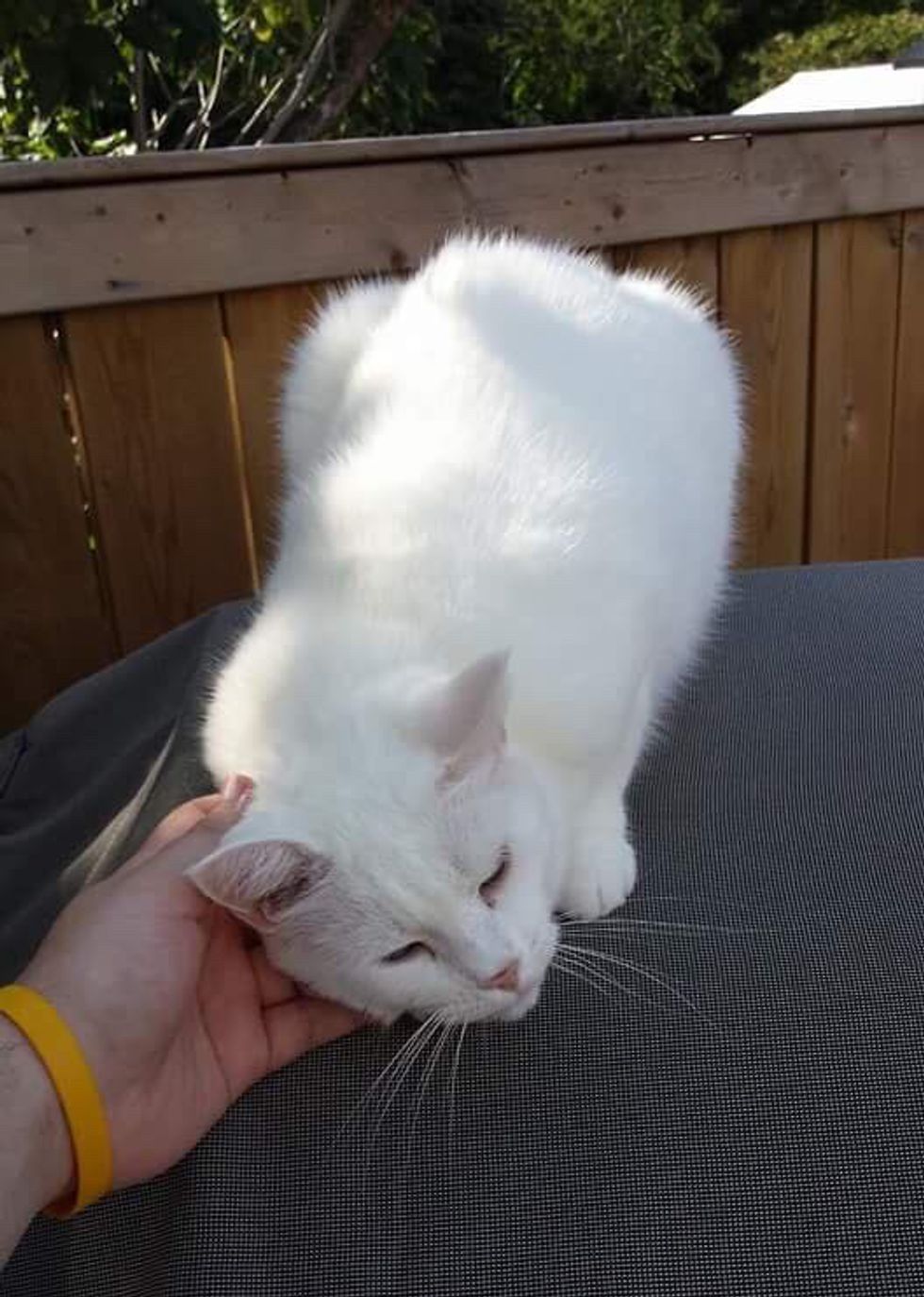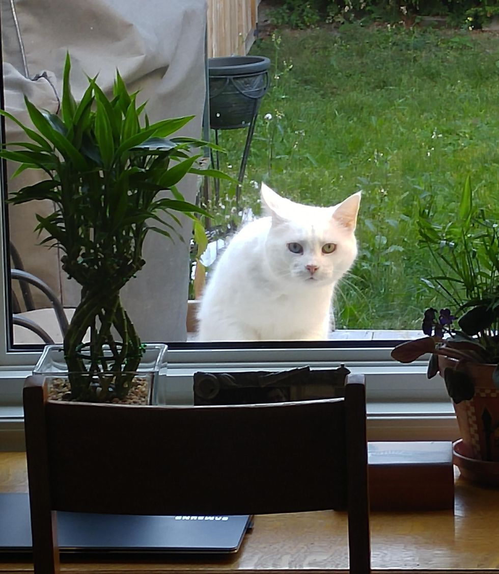 "She meows and paws at the window or patio window to try and get our attention. If she doesn't see us she will sleep on the patio furniture waiting for us," they told Love Meow.