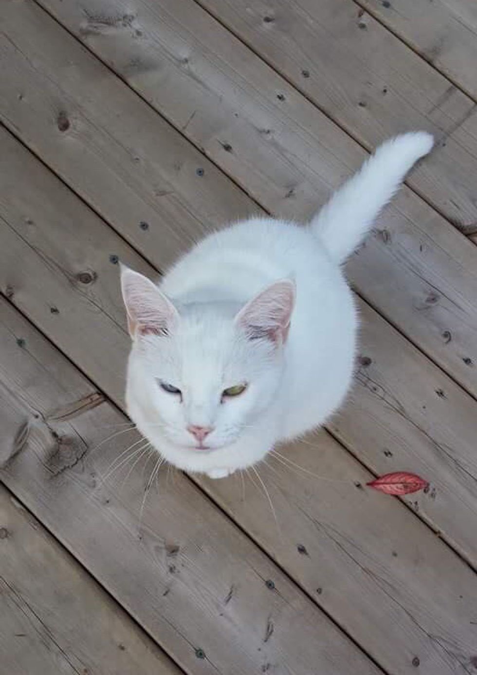 Over a year ago, the cat showed up on their patio and scampered up to them as if she'd known them all her life. "It was really cute," imgur user Antoine2449 told Love Meow.