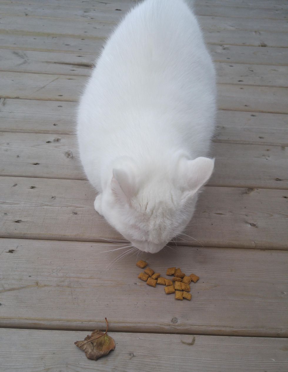 The kitty has had her neighbors trained.