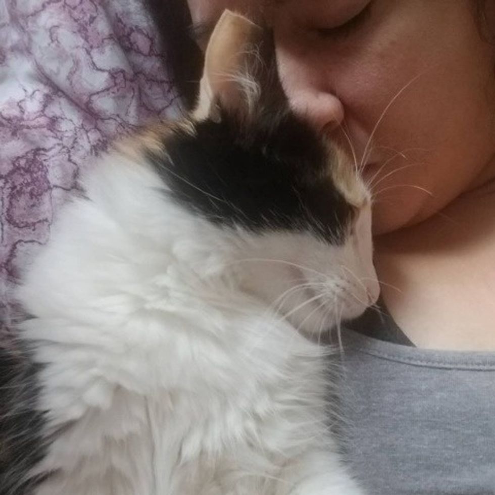 Eventually, the calico would stay with Linda even if something outside frightened her. "Although she was originally feral, was starting to love, and I thought she would make a great pet."