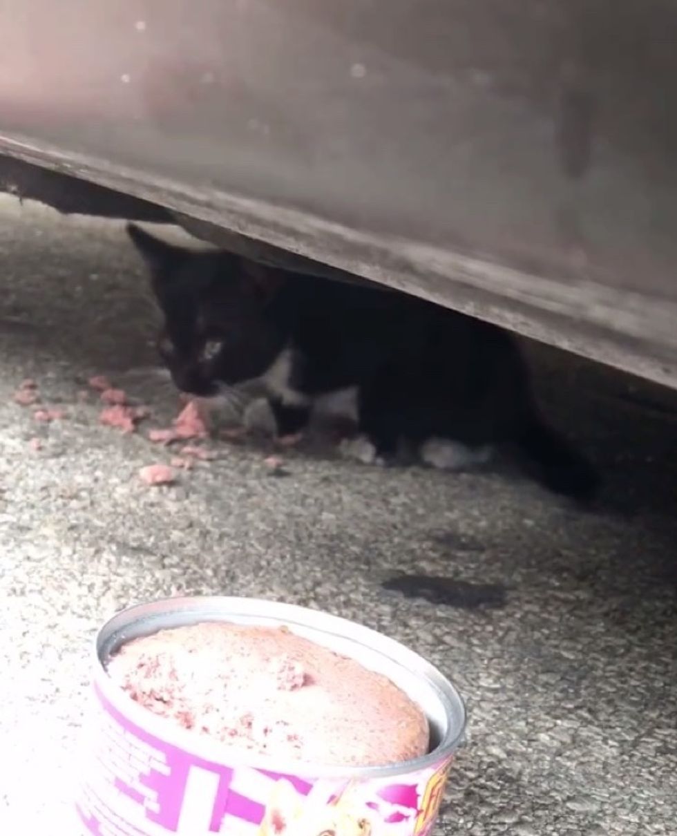 She brought some sausages, kitten food in hopes to coax the kitten out.