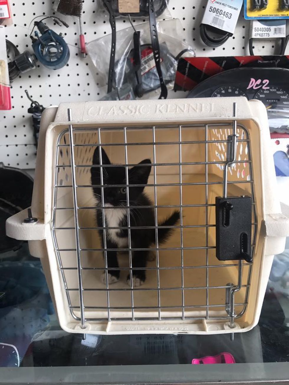 When the man pulled his car over to an auto shop, an employee there heard the meowing and sprang into action.