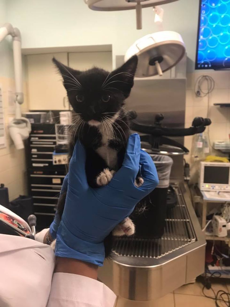 Bryanna managed to get the kitten in a carrier and brought her to Coral Springs Animal Hospital where she was examined.