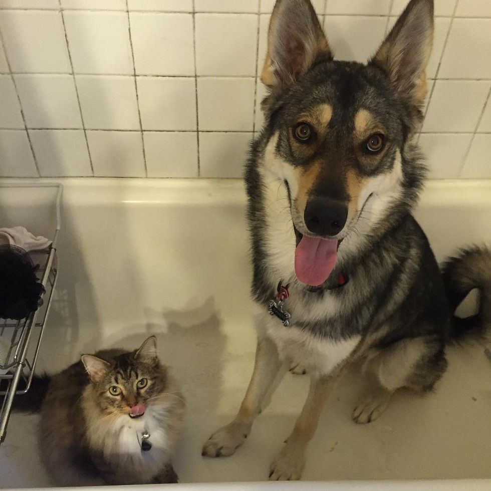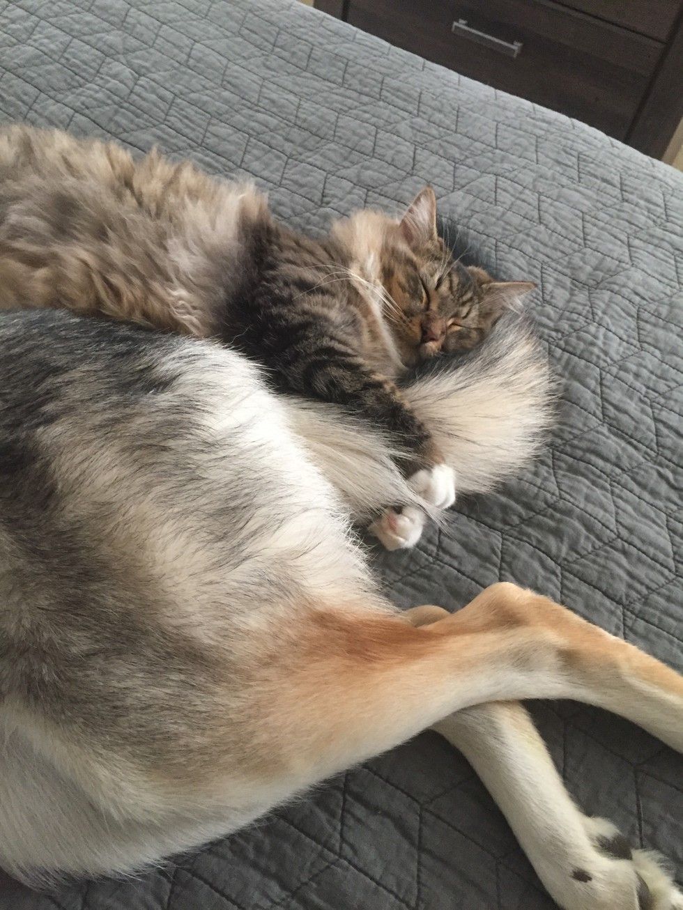 The two have been on all kinds of adventures together. They never think they are any different despite one meows and the other woofs. To them, they are family for life!