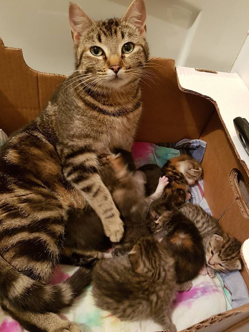 It took months for a family to save a stray cat they had befriended. When they finally rescued her, they realized they had in fact rescued eight.