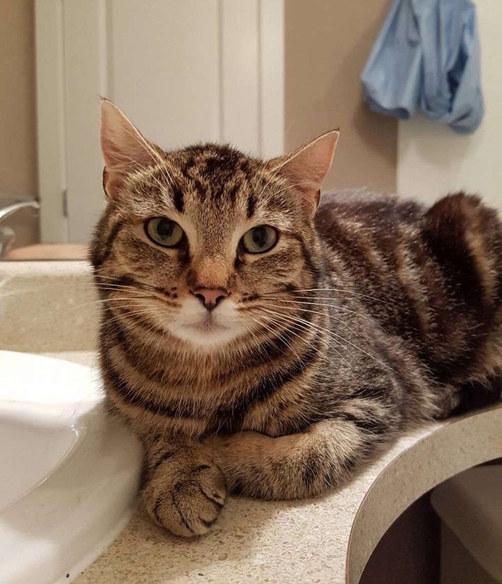 "Now she just loves affection and will often get between us and the kittens as if to say 'Hey! Love me! I want pets!' And she's very playful as well."