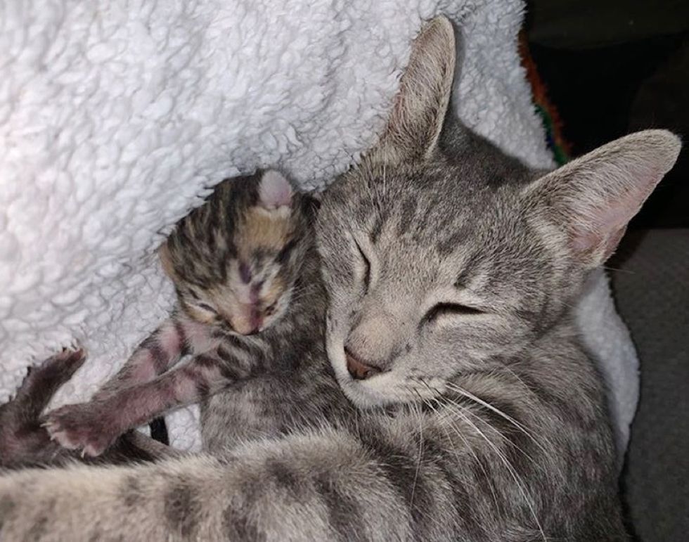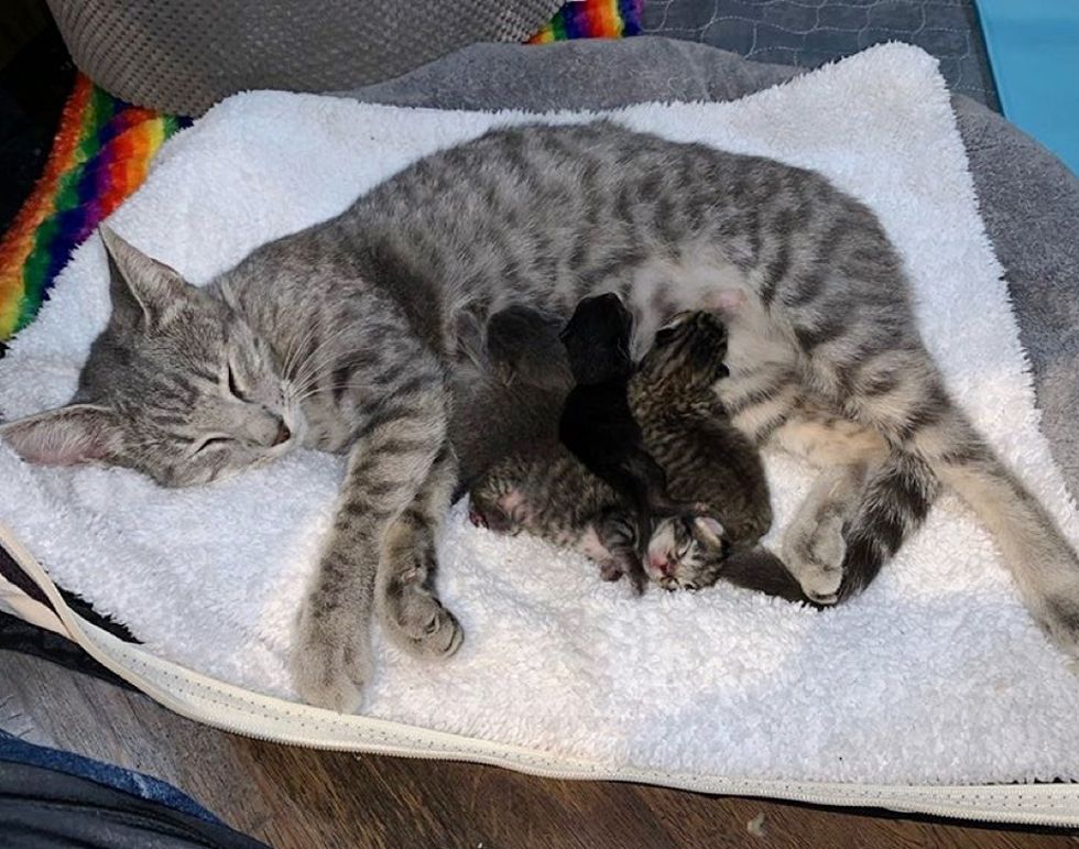 The tabby cat came to the right home to have her kittens. Now, they will never have to worry another day on the streets.