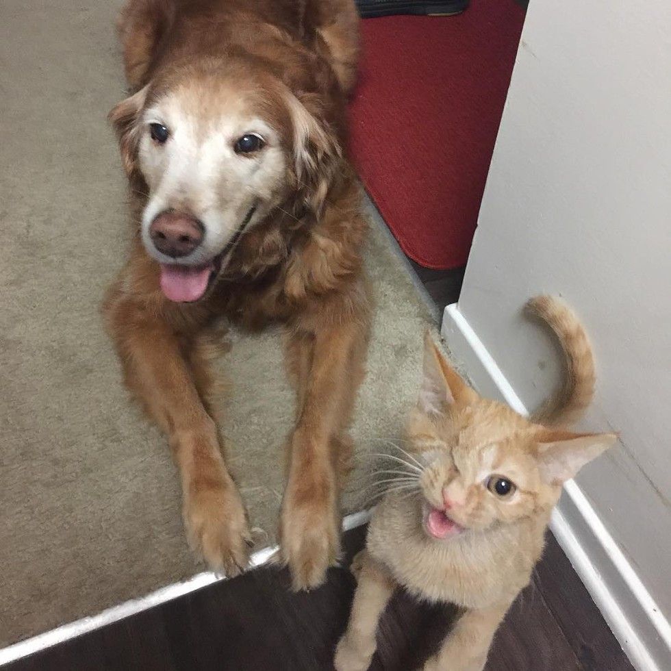 "Odin's personality resembles that of a dog. As a matter of fact, one of our dogs Megan (another ginger) has taken a maternal role since he was a baby.