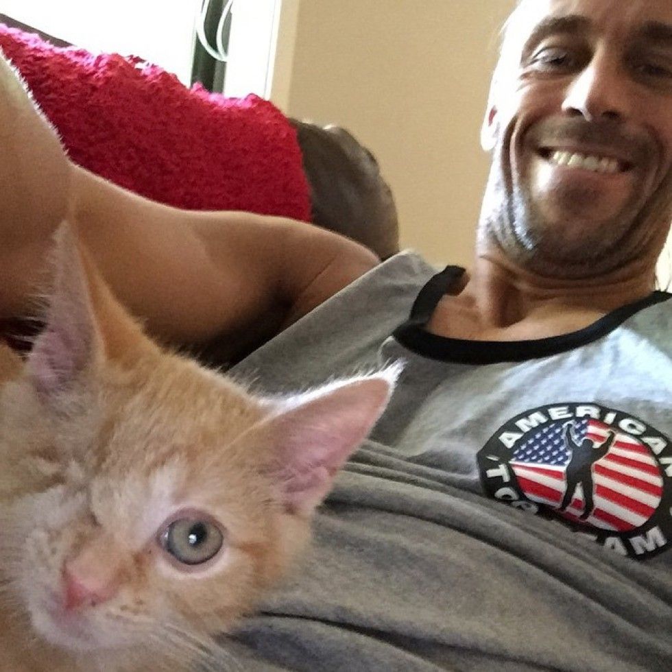 "He was abandoned at a vet's office around 2 weeks old with a pretty severe eye infection. The vet had plans to euthanize him the next morning, but one of the techs smuggled him out of the office and contacted Angels Among Us," Stevie Richards told Love Meow.
