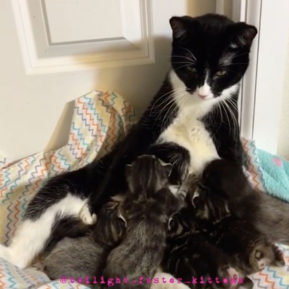 Aimee Avllia, a volunteer of the rescue, brought Amalthea into her care. Soon after she settled into her foster home, she gave birth to six Manx kittens where five of them were born without a tail.