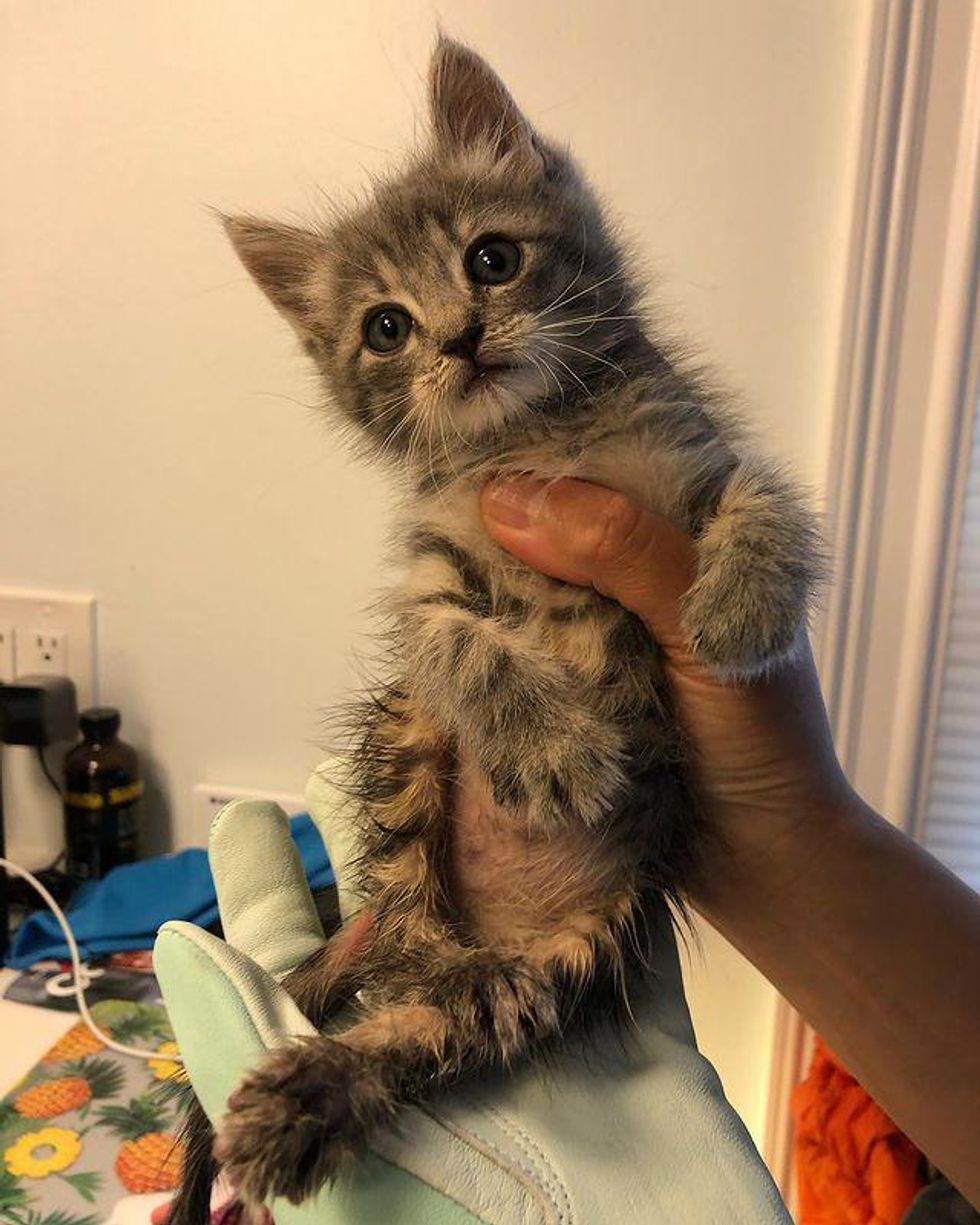 They treated her for fleas and gave her a safe and comfortable nest to rest and heal. The kitten was lovingly named Tilli, which means mighty in battle.