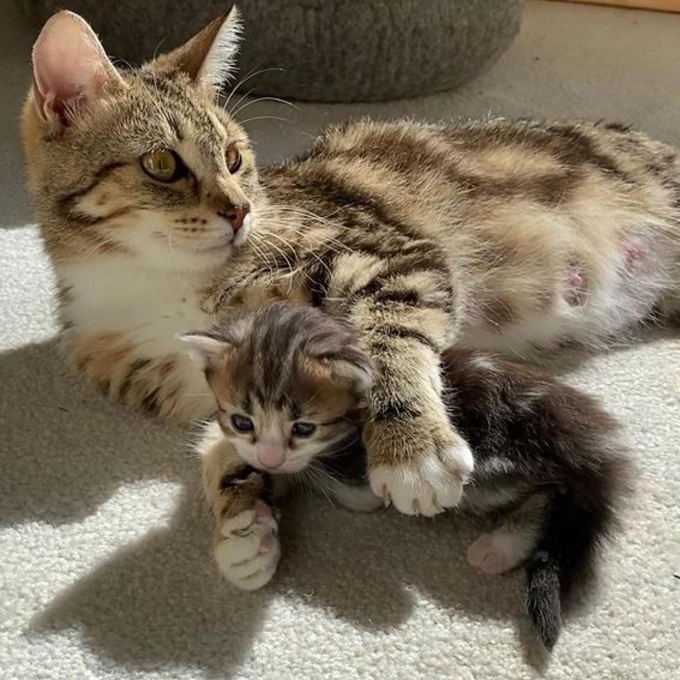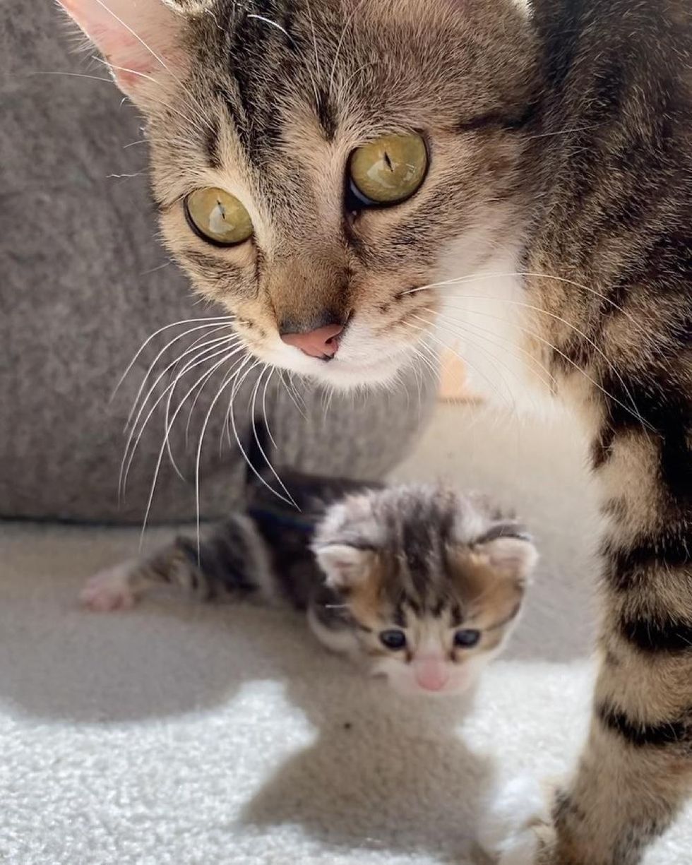 "Mom is a very talkative cat. Sometimes, she even gives little meows of encouragement as Dove learns to walk," Angela told Love Meow.