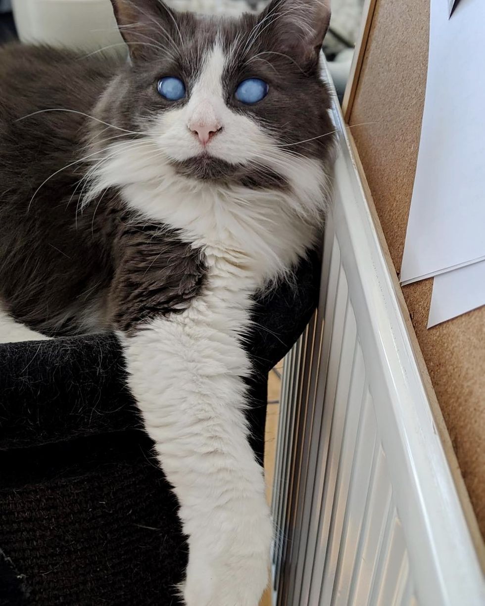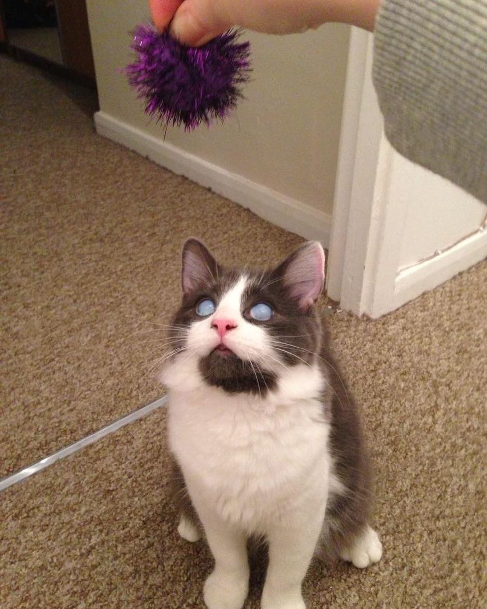 "I think his senses and his whiskers combined just work together so well that his lack of sight isn't such a game changer. Obviously, it would be different if he were on the streets. In an environment that he knows and stays constant, he's fine."
