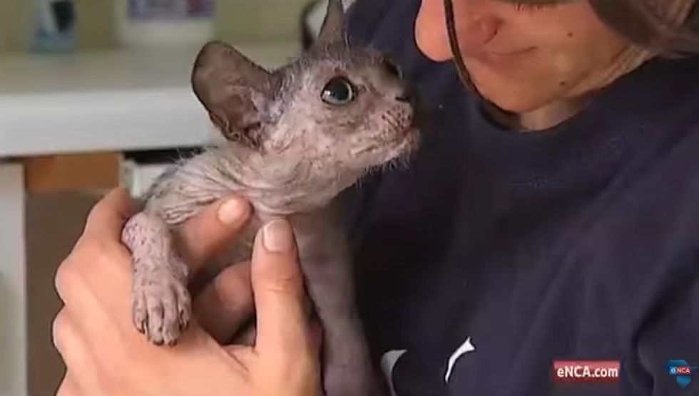 "At first it was thought he was a Devon Rex or Sphinx but DNA tests ruled this out. So maybe it was a strange skin condition. Tests also ruled this out. So TEARS' staff starting searching for other explanations and that's when they discovered that the kitten just might be an incredibly rare Lykoi," Gilpin said.