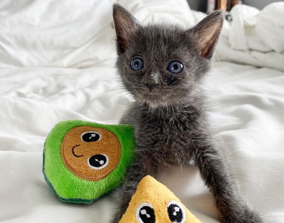 A tiny kitten bounced back from the brink and turned out to be the sweetest little companion.