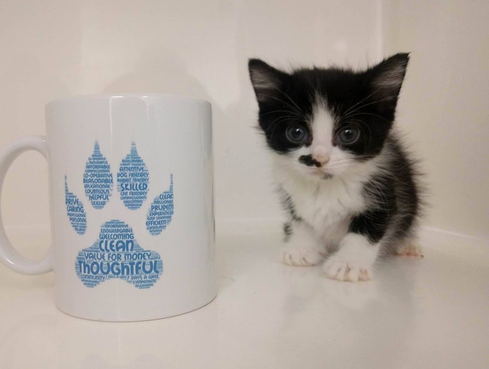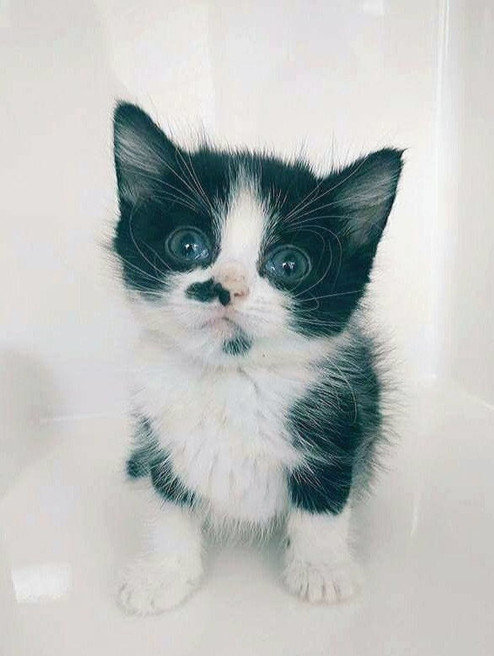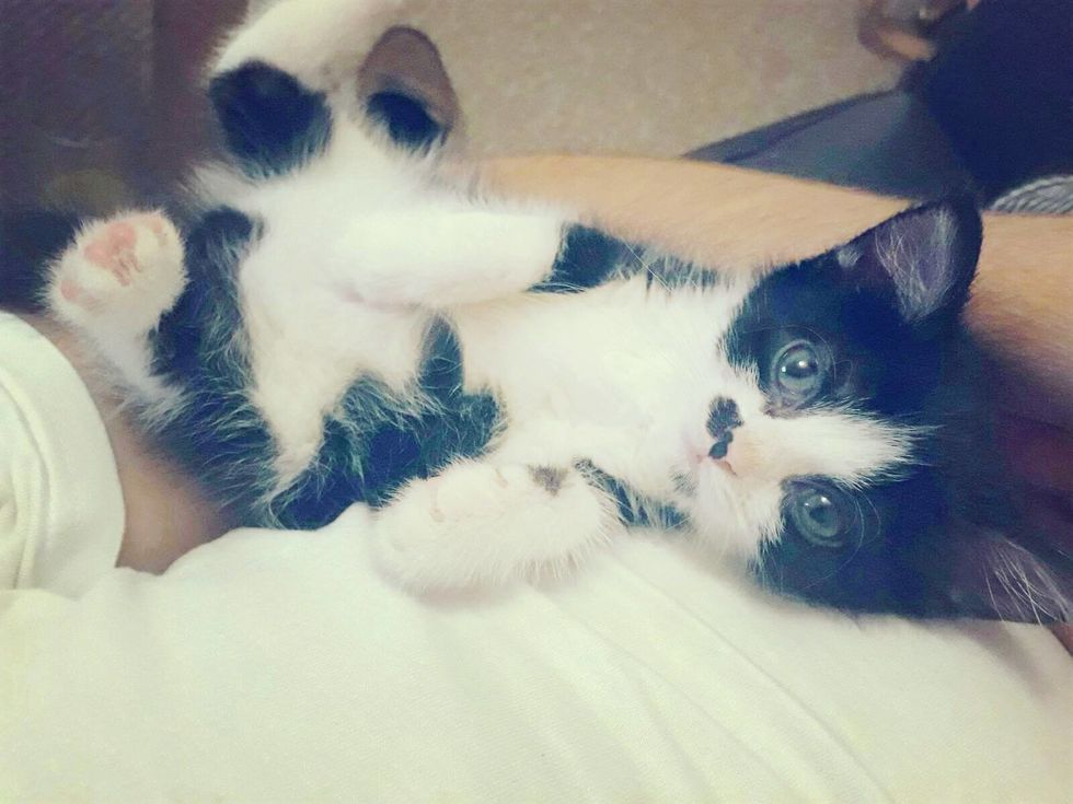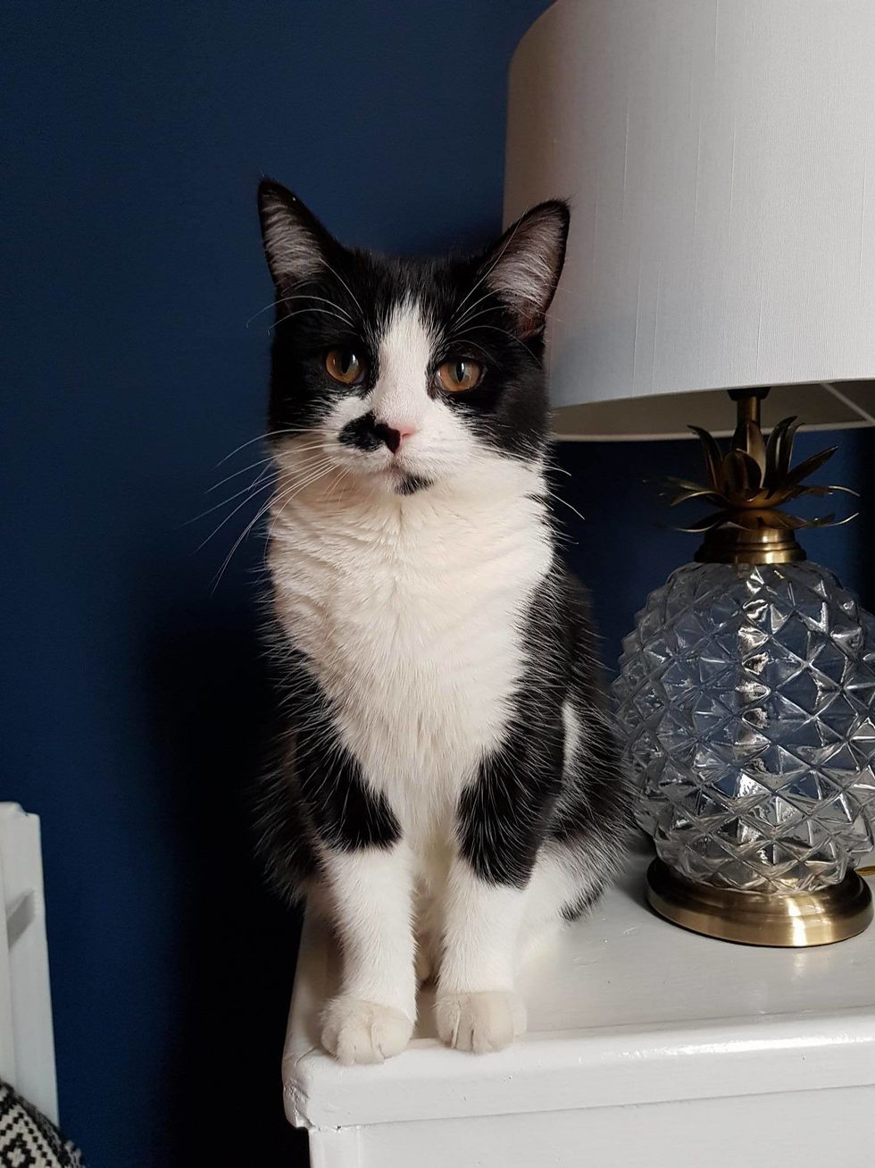 The tiny kitten who was half her size for her age, has blossomed into a gorgeous tuxedo cat.