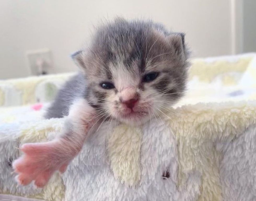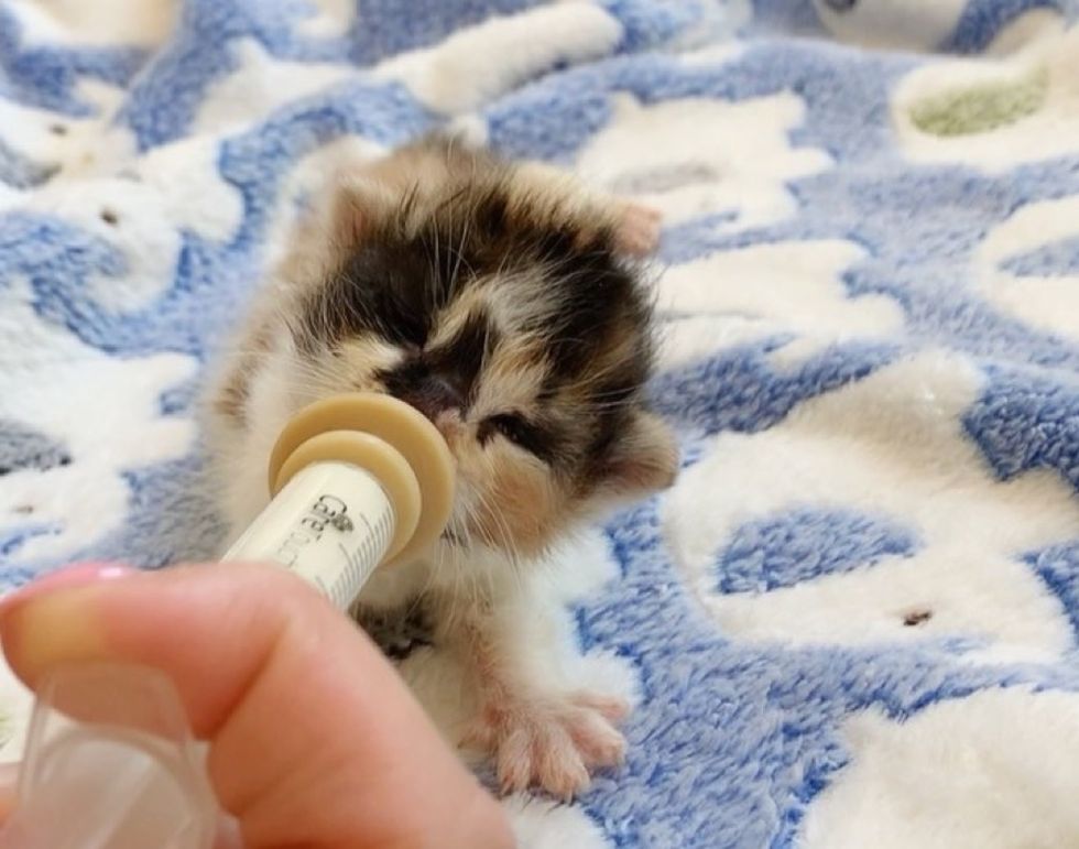 The kittens were discovered by a resident. "They were only one week old with eyes barely starting to open. Their mom was hit by a car and they were not found until days later," Caroline shared with Love Meow.