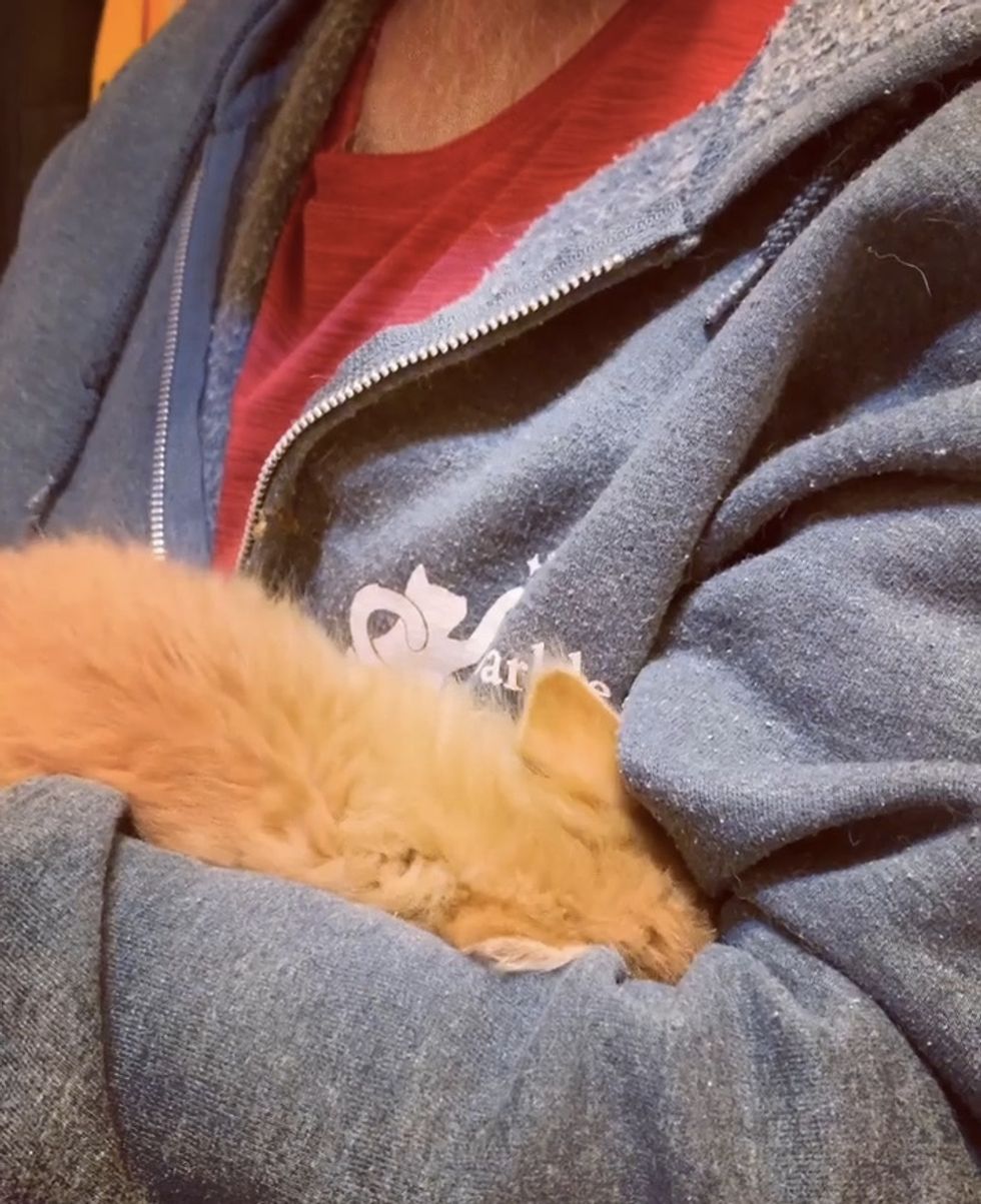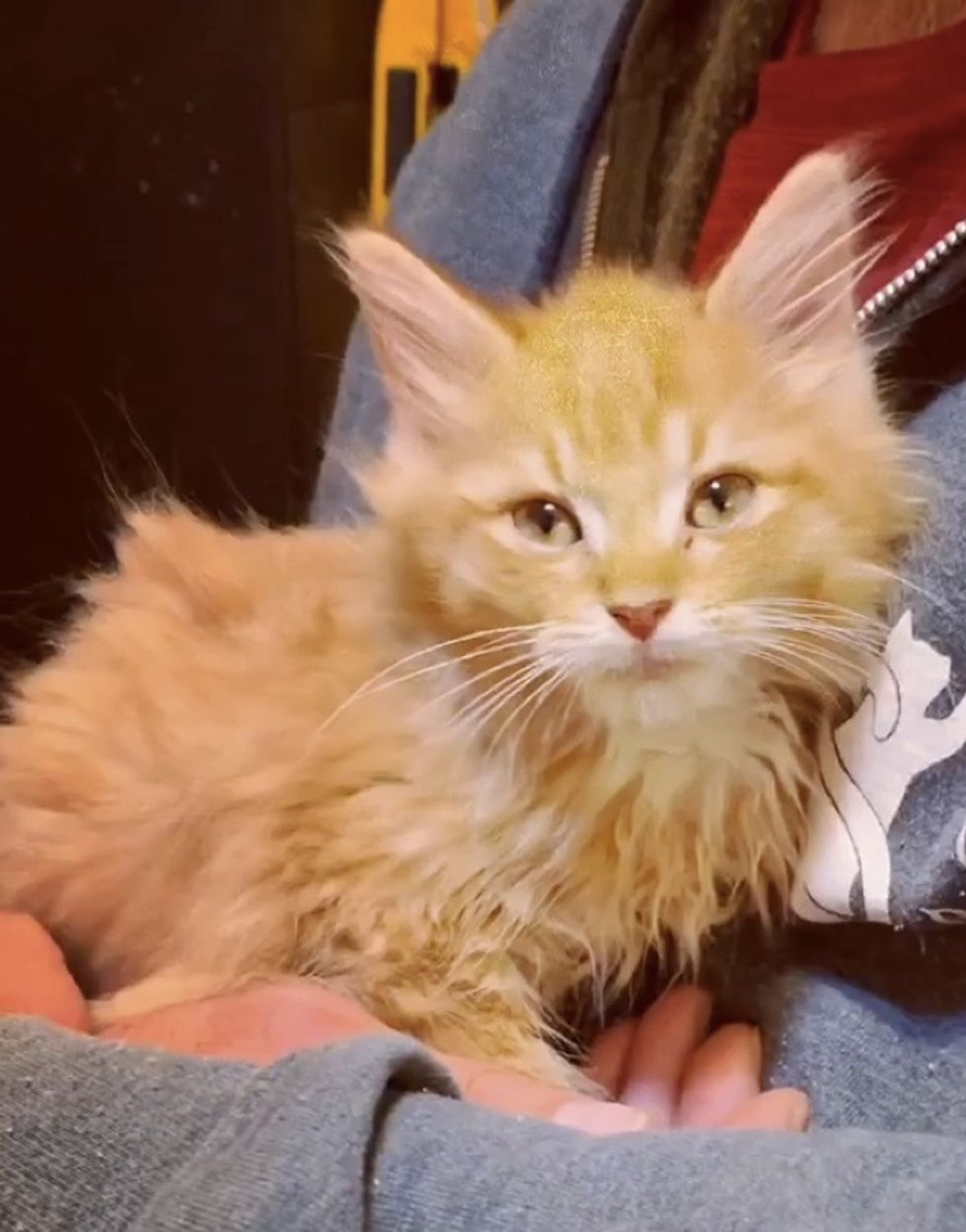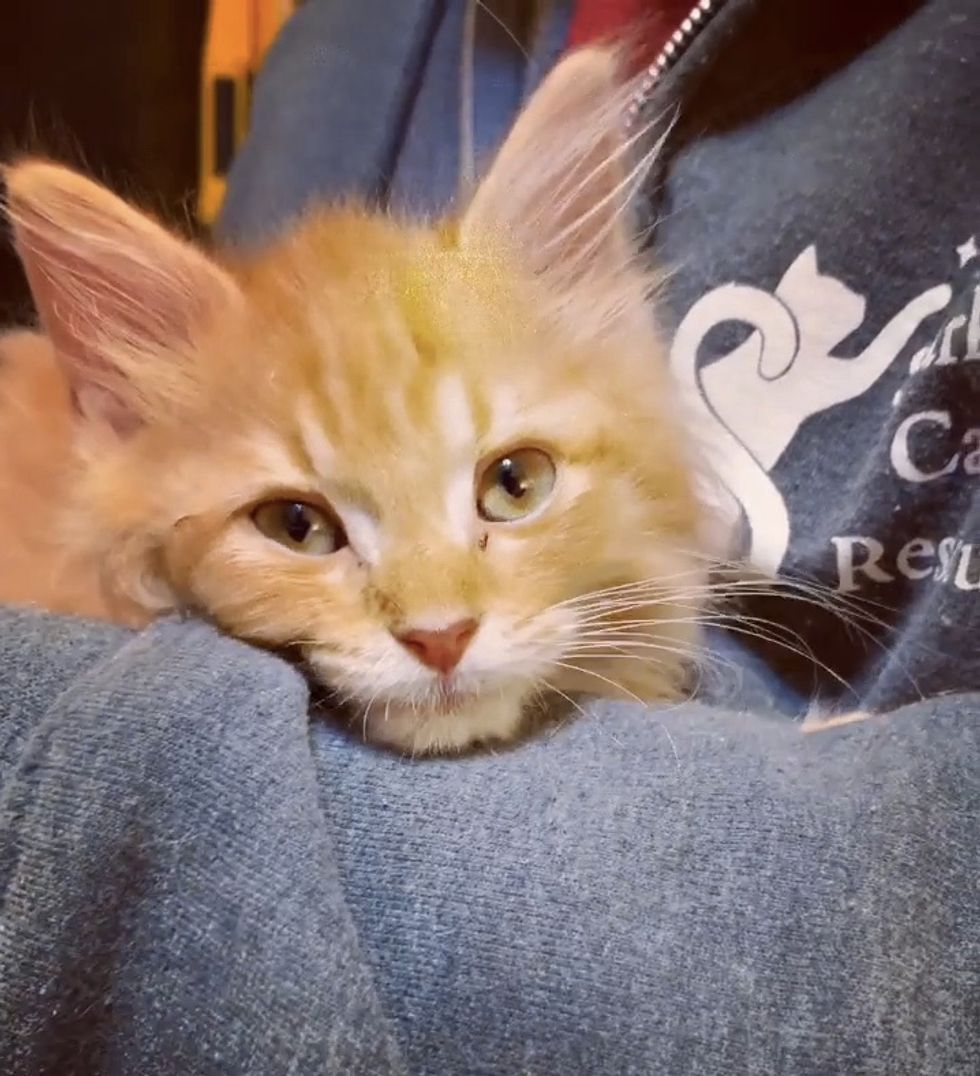 They named him Leo, and the ginger boy was so happy to be safe -- he stopped crying and started to purr.